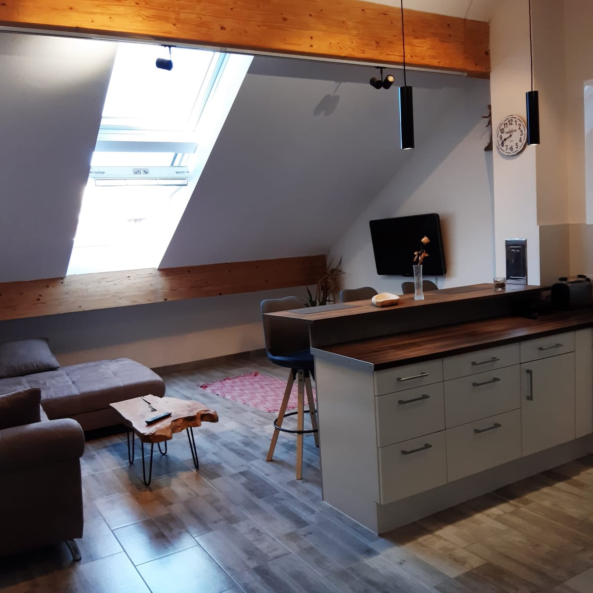 Willkommen in dieser modernen Dachgeschosswohnung auf über 80 m² Grundfläche. Das voll ausgestattete Apartment bietet zeitgemäßen Komfort in ruhiger und dennoch zentraler Lage. Der offene Grundriss verleiht der Wohnung Großzügigkeit und mit dem zeitgemäßen Stil ein einladendes Ambiente.