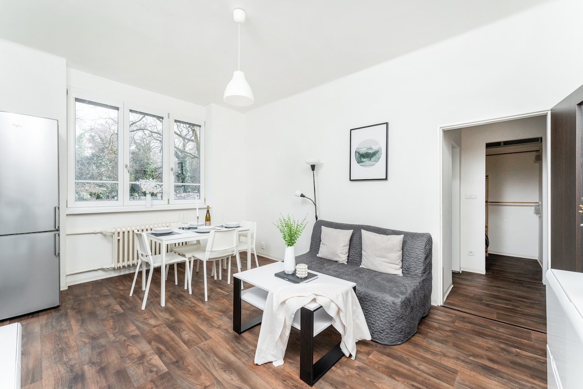 Apartament frumos renovat și mobilat, elegant, de aproape 50 mp, cu 1 dormitor, cu balcon orientat spre curtea verde. Wi-Fi foarte rapid. Cartier la modă și acces rapid la metrou sau tramvai - la numai 10 minute de centrul istoric! Conexiune rapidă la aeroport (30-40 de minute), gară și autogară (10 minute), centrul orașului și principalele atracții turistice (10 minute, 30 de minute de mers pe jos). Metrou și mall la 5 minute de mers pe jos. Experiență locală adevărată într-un cartier frumos, sigur și plin de viață!