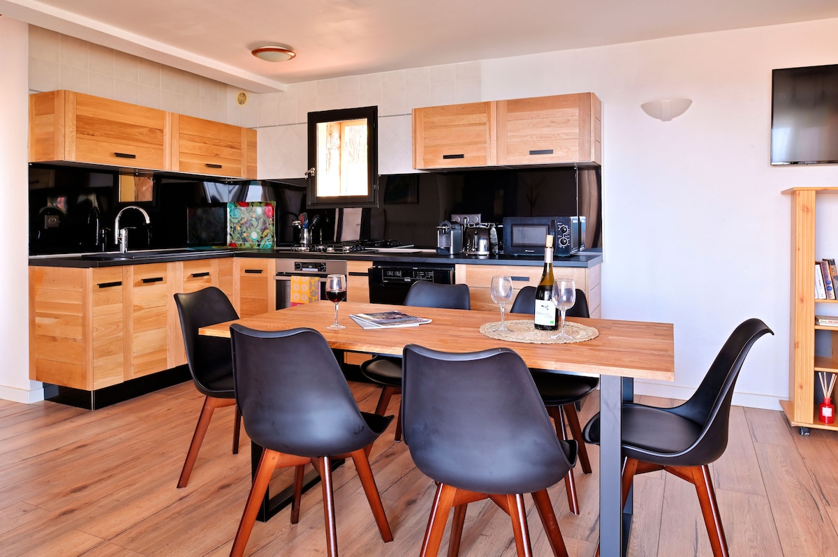 Détendez-vous dans ce logement calme et élégant. Maison d'architecte réalisée en 2024, vue imprenable sur le village, aménagement de qualité. Piscine exceptionnelle partagée avec le propriétaire. Possibilité de réserver le Duplex voisin si vous êtes 5/7. ATTENTION : ce logement est déconseillé pour les enfants en-dessous de 10 ans (piscine, nombreuses marches, escalier étroit et pentu pour aller à la chambre de l'étage). La chambre enfants est à l'étage.