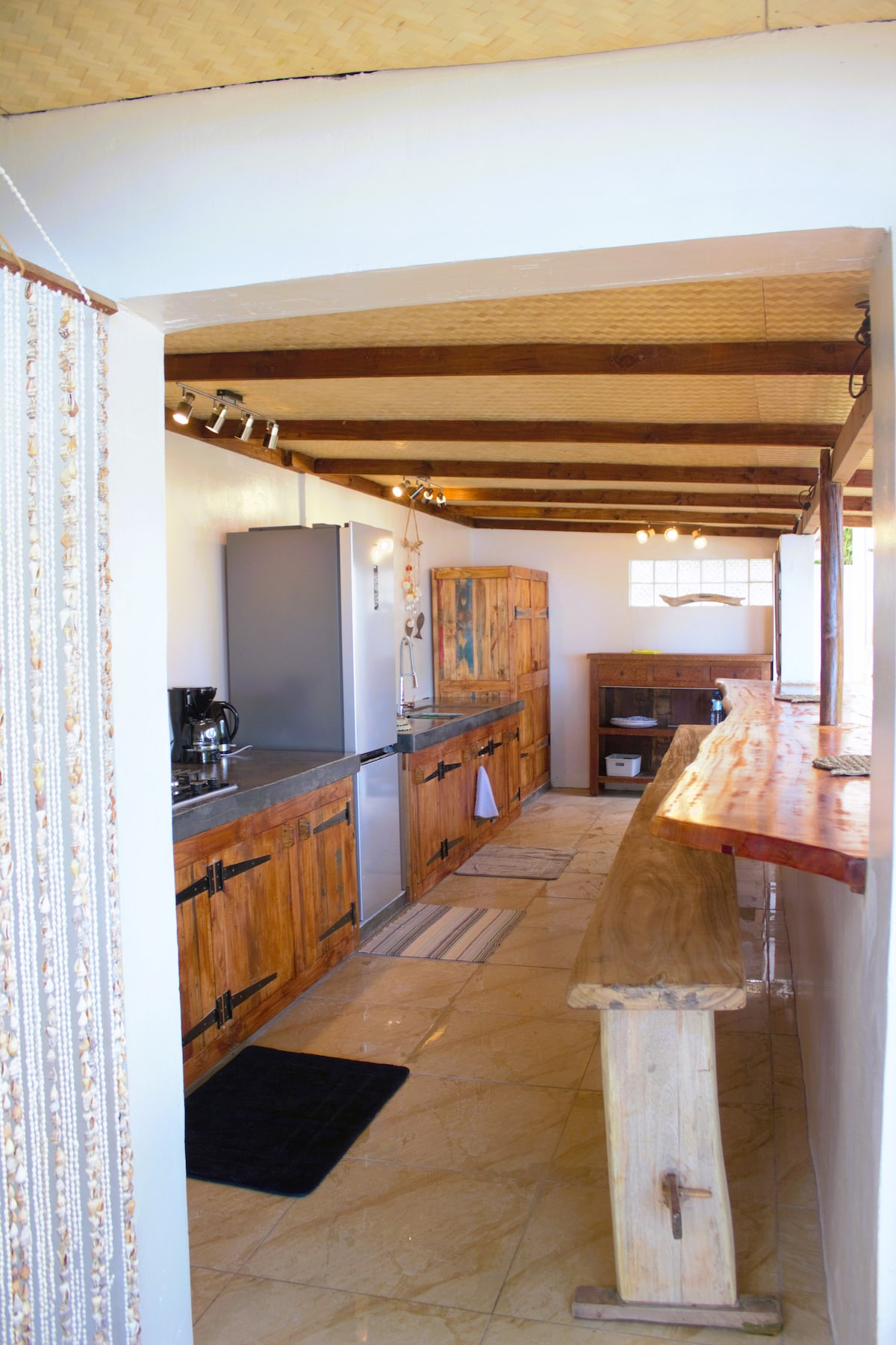 Bungalow duplex indépendant, bord de mer, situé dans une propriété privée. 1 chambre climatisée avec 1 grand lit 2 places + 1 canapé-lit. Un espace cuisine et salle de bain. Terrasse privative exterieure dans jardin bord de l'eau. 2 kayaks à disposition pour accéder au banc de sable à 100 mètres du faré et au spot de surf de Taapuna, à 800 m. Aéroport international /inter-îles à 10 minutes en voiture. Supermarché ouvert 24h/24 à 10 minutes à pieds. Restaurants, snack et roulottes à proximité.