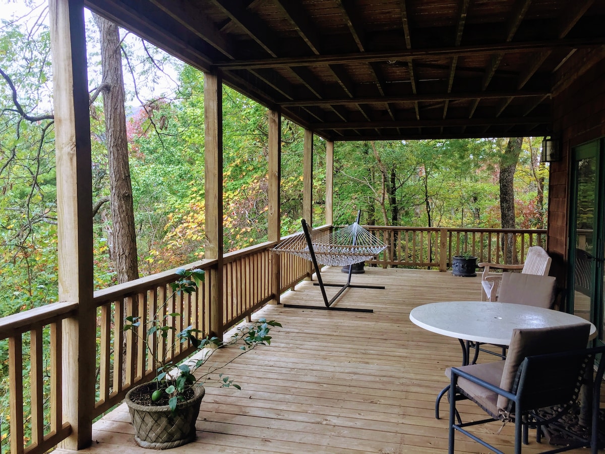 Looking for a quiet, private mountain getaway? This is the place! Your private deck has a view of Scaly Mountain. You will be comfortable in a large suite complete with refrigerator, microwave, coffee, snacks and Continental breakfast. The beauty of solid oak antiques is only surpassed by the comfort of the bed with a memory foam topper, Egyptian cotton sheets and hand made quilt. Within a 15 minute drive of excellent restaurants and shopping in Highlands, waterfalls, hiking and so much more.