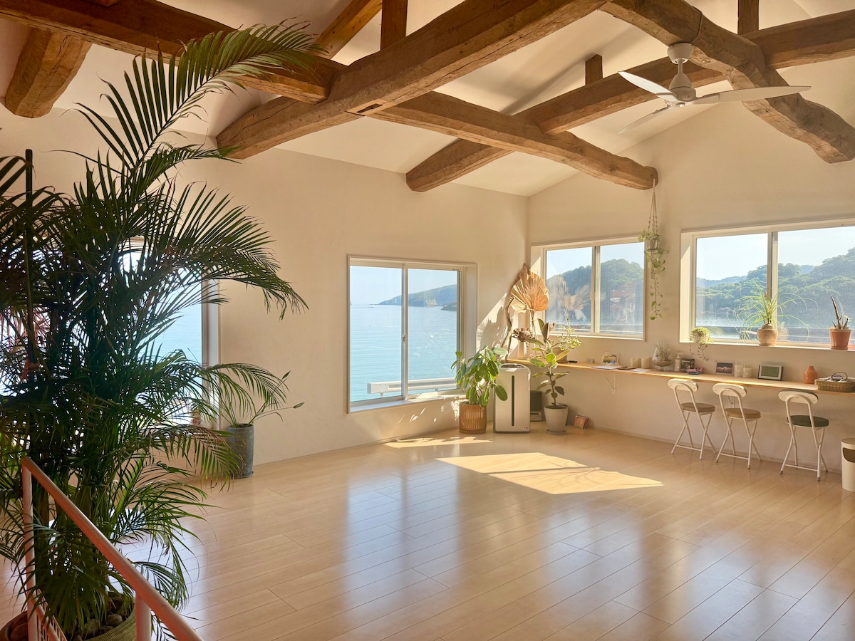 [National Park/Beachfront] Private Matsue villa for 1 group. 1F LDK for up to 8 guests. Oceanfront with waves as BGM. Direct beach access. "SEABASE villa at shimane" is a retreat in Daisen-Oki National Park. ■Highlights 1F LDK/Dirt Floor: Dining for 10. Open space. 2F Bedroom: Large windows with stunning ocean views. Amenities: Indoor garage, cookware, 65" TV, High-speed Wi-Fi. Activities: SUP, swimming, fishing, yoga, stargazing. Experience the "Luxury of doing nothing."