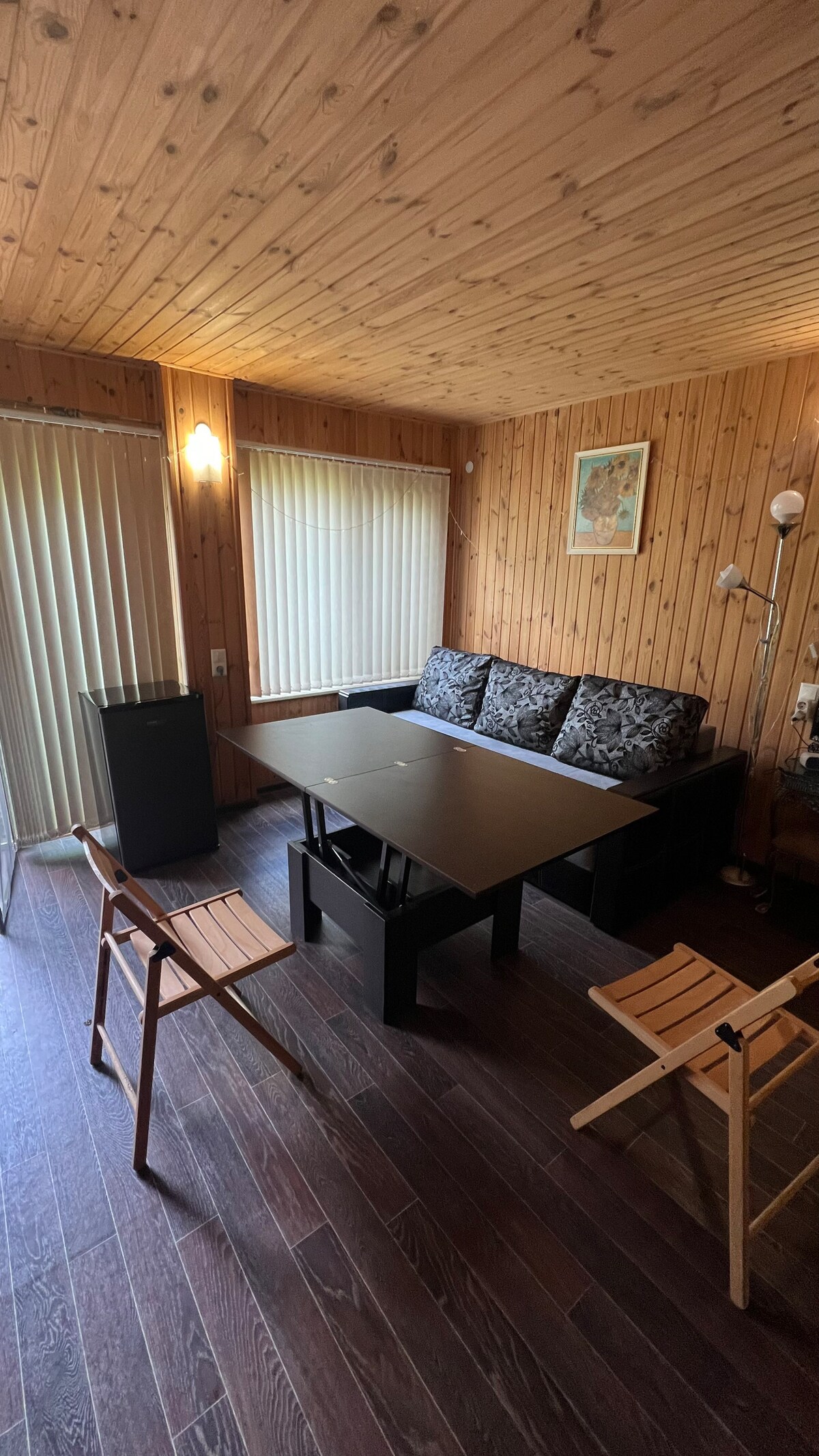 🌿O casă confortabilă cu saună în grădină — chirie zilnică. O casă separată pe teritoriul sectorului privat. Cabana a fost construită ca o baie cu o cameră de relaxare, iar acum este disponibilă pentru închiriere — un loc ideal pentru o vacanță pentru doi sau un grup mic. Iată la ce te poți aștepta: Sauna cu lemne de foc este o saună adevărată cu aragaz, ideală pentru relaxare. Lounge-ul este confortabil, cu o canapea pliantă și finisaje ecologice din lemn.