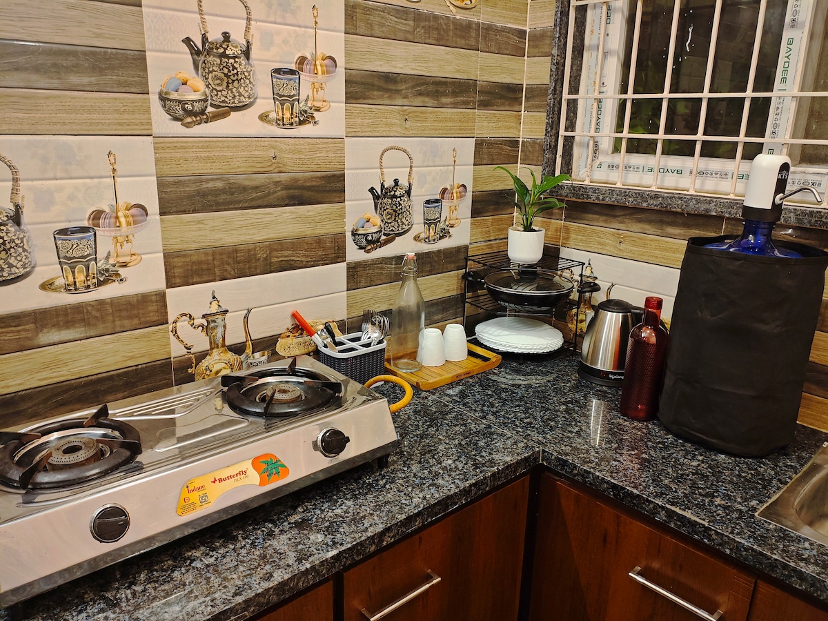Bine ai venit la Amber & Jade Stays, casa ta confortabilă departe de casă, la periferia liniștită a orașului Bhubaneswar. Acest elegant 1BHK îmbină confortul și natura cu o zonă de living luminoasă, bucătărie complet utilată și un dormitor matrimonial de pluș. Bucură-te de dotări moderne, cum ar fi Wi-Fi, AC și un televizor inteligent într-un cadru liniștit, potrivit pentru animale de companie, înconjurat de verdeață. Este perfect pentru cupluri, călători sau lucrători la distanță care caută liniște și confort. Adu-ți prietenul blănos și relaxează-te în confort la Amber & Jade Stays. 🐾