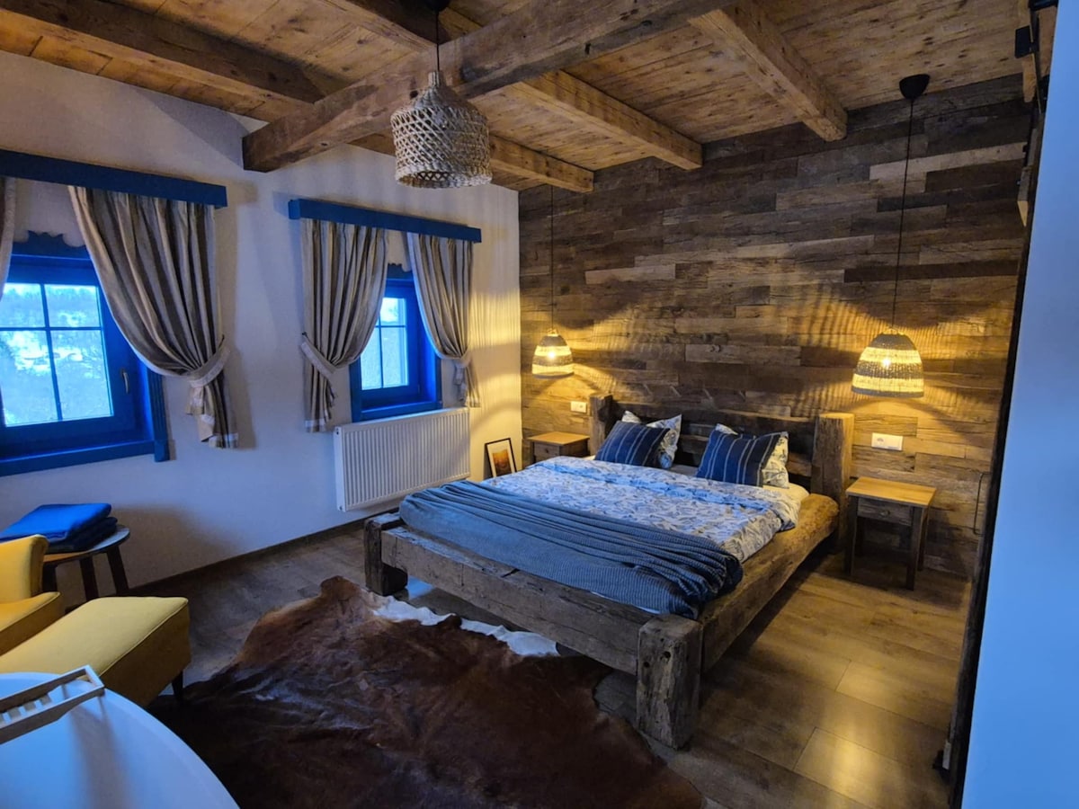 Acest loc de cazare elegant este perfect pentru călătorii de grup, familii și weekend-uri romantice. Casa este complet separată, chiar pe malul pârâului de băut. Întâlnirea cu lemn, metal și suprafețe uriașe de sticlă îți oferă un fundal interesant și relaxant pentru vacanța oaspeților noștri. Rămânerea aici este o experiență reală!
