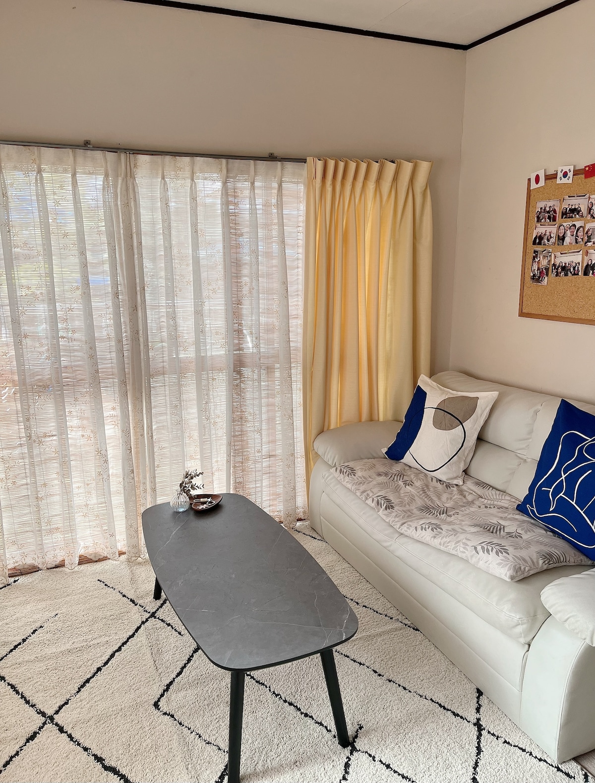 This guesthouse accommodates up to 10 people, or 20 if rented with the adjacent Building C. Located 2 minutes by car from the Ogaki IC on the Meishin Expressway and a 5-minute walk from the bus stop, it features a spacious living/dining area ideal for families, groups, or sports camps. Equipped with a 65-inch TV and sound system, it’s perfect for watching videos, movies, sports games, or hosting team meetings.