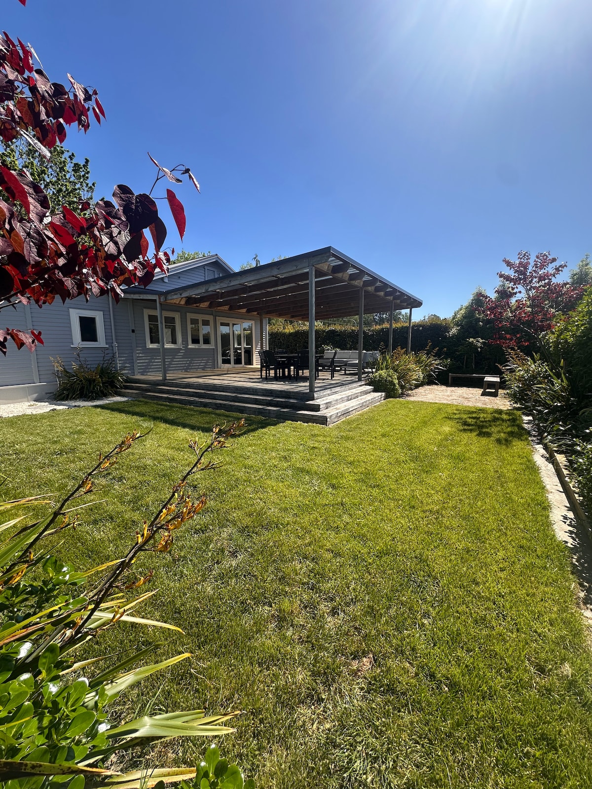 Cazează-te 3 și plătește numai pentru 2 nopți în timpul săptămânii până în timpul iernii Reducere specială aplicată la cererea de rezervare Această casă minunat de modernă este poziționată pe o secțiune mare, liniștită și privată, aproape de plaja principală. Această locuință luminoasă și însorită se deschide spre o terasă scăldată de soare din fiecare cameră prin uși glisante și stivuitoare mari. Relaxează-te citind o carte în leagănul de pe terasă și ascultând cântecul tui în tufișul consacrat. Adormi în curgerea calmă a pârâului în afara ambelor uși ale dormitorului