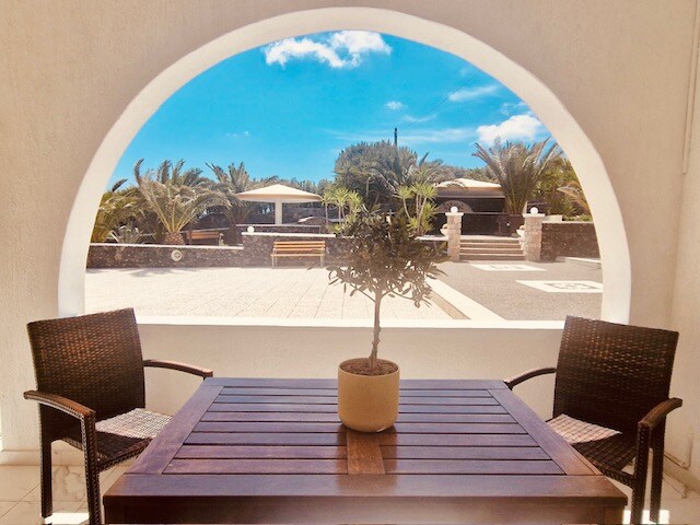 Dimensiunea camerei 20 m² Acest studio cu aer condiționat se deschide la un balcon sau terasă comună cu vedere la piscină sau la munte. Mobilat în mod tradițional, are o chicinetă cu plite de gătit și un minifrigider. • Duș • Uscător de păr • Baie privată • TV • Canale prin satelit • Cutie de valori • Aer condiționat • Bucătărie • Frigider • Fierbător electric • Articole de bucătărie