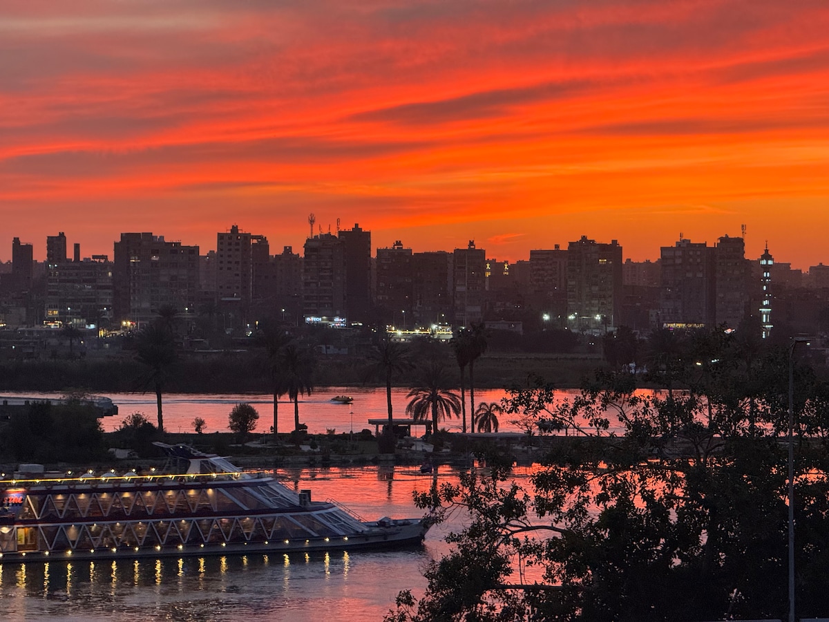 Bine ai venit la liniștea ta Priveliști uimitoare ale Nilului Trezește-te cu priveliști panoramice ale râului Nil, unde răsăritul soarelui pictează cerul în nuanțe vibrante. Bucură-te de cafeaua de dimineață pe balcon în timp ce privești bărcile alunecând * Interioare spațioase și elegante * Apartamentul nostru este conceput cu gândul la confortul tău. Poziție principală #Dotări pentru orice nevoie bucătărie complet utilată sau bucurându-te de o noapte de film cu televizorul nostru inteligent, avem tot ce îți trebuie pentru o ședere confortabilă. Abia așteptăm să te întâmpinăm!