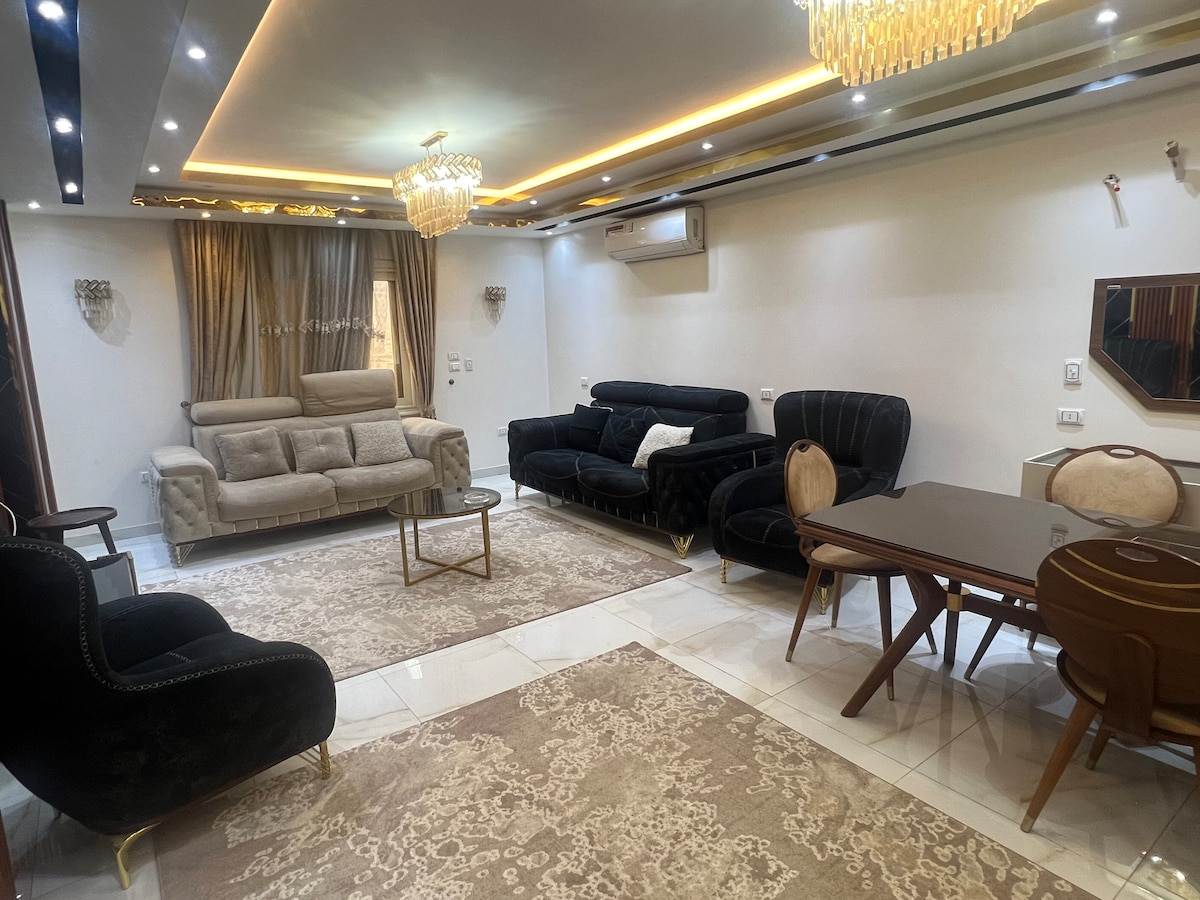 Apartamente de lux uimitoare cu vedere la Nil, cu vedere la apus și piramide . Bucură-te de o experiență elegantă în acest loc situat central în turnuri noi, te poți bucura de ședere împreună cu oaspeții tăi minunați simțindu-se complet confortabil în interiorul casei clasice #10 Minutes from Downtown (Cairo Museum and Burj of Cairo #12 minute de AlMohandessin #20 de minute de la piramide