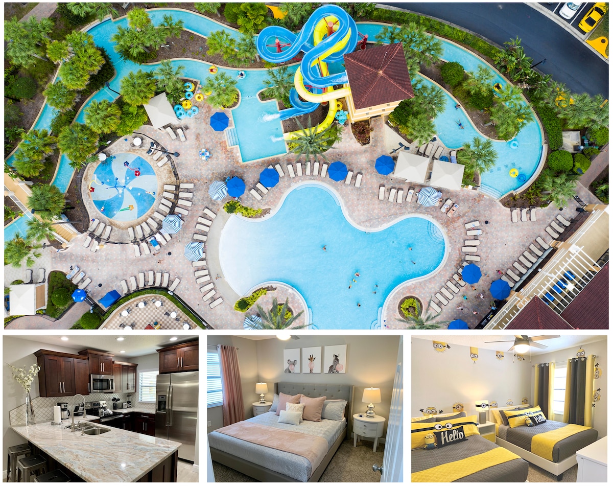 Immerse yourself in our delightful villa at Fantasy World Villas, minutes from Disney, Universal & Sea World. This modern 2-bed home features a Minions-themed room, king-size bed in the master, full kitchen, laundry, private patio, free Wi-Fi & parking. Enjoy resort amenities: heated pools, hot tubs, lazy river, water slides, tiki bar, gym, playground, sports courts, and more. Walk to restaurants & find grocery stores nearby. Create lasting memories in this captivating vacation haven! Book Now!