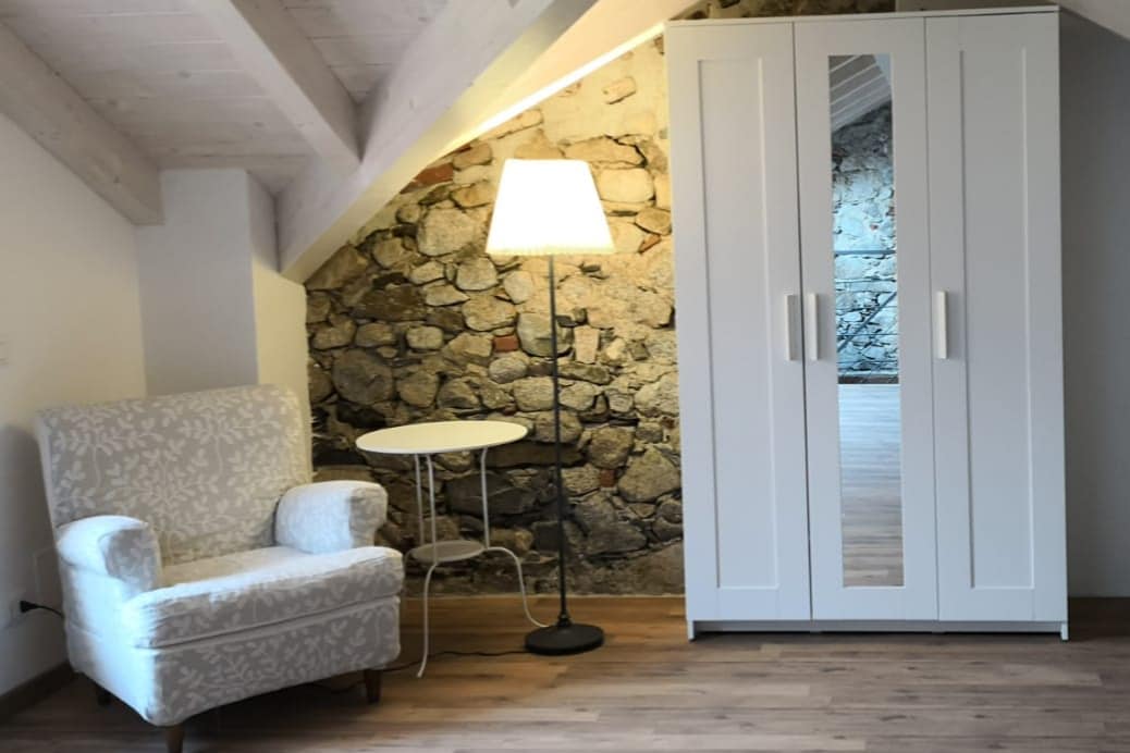 Privește peste priveliști uimitoare de 180 de grade ale insulelor de pe Lago Maggiore de la ferestrele expansive, din podea până în tavan ale acestei vile minunate din piatră rustică, veche de 230 de ani. Mobilierul antic completează perfect arhitectura istorică. Casa se află pe 3 etaje, astfel încât este necesar un pic de mers pe jos în sus și în jos pe scări. Dormitorul principal se află la etajul superior și al doilea dormitor (două paturi de o persoană) și baie la etajul cel mai de jos. Ideal pentru cupluri și familii, dar nu și pentru persoanele în vârstă sau grupuri de 4 adulți.