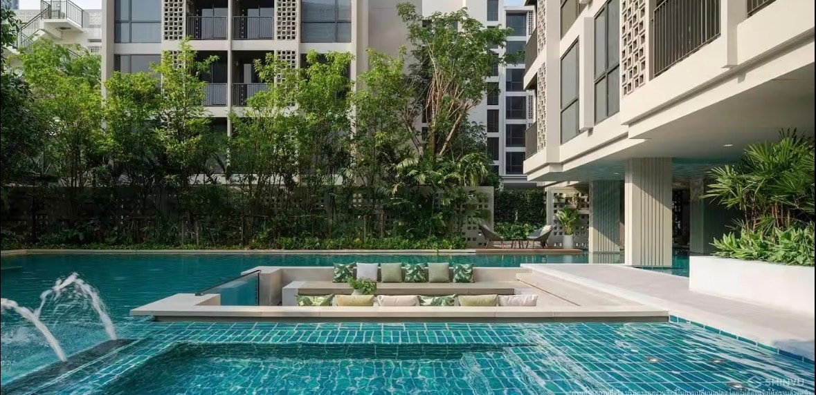 Escape to this quiet resort-style 1-bedroom w/ courtyard view in OnNut. Nestled in a safe community by the canal, the condo features a plush queen bed, kitchen, smart TV & WiFi. Unwind in the swimming pool, hot/cold jacuzzis (weekends), use the gym, relax in the massage chairs or work in the Co-working room. Free golf cart to the community mall (walking distance) and a free shuttle bus to On Nut BTS, Tesco, and Century Mall (movie theater). The perfect mix of relaxation and city access.