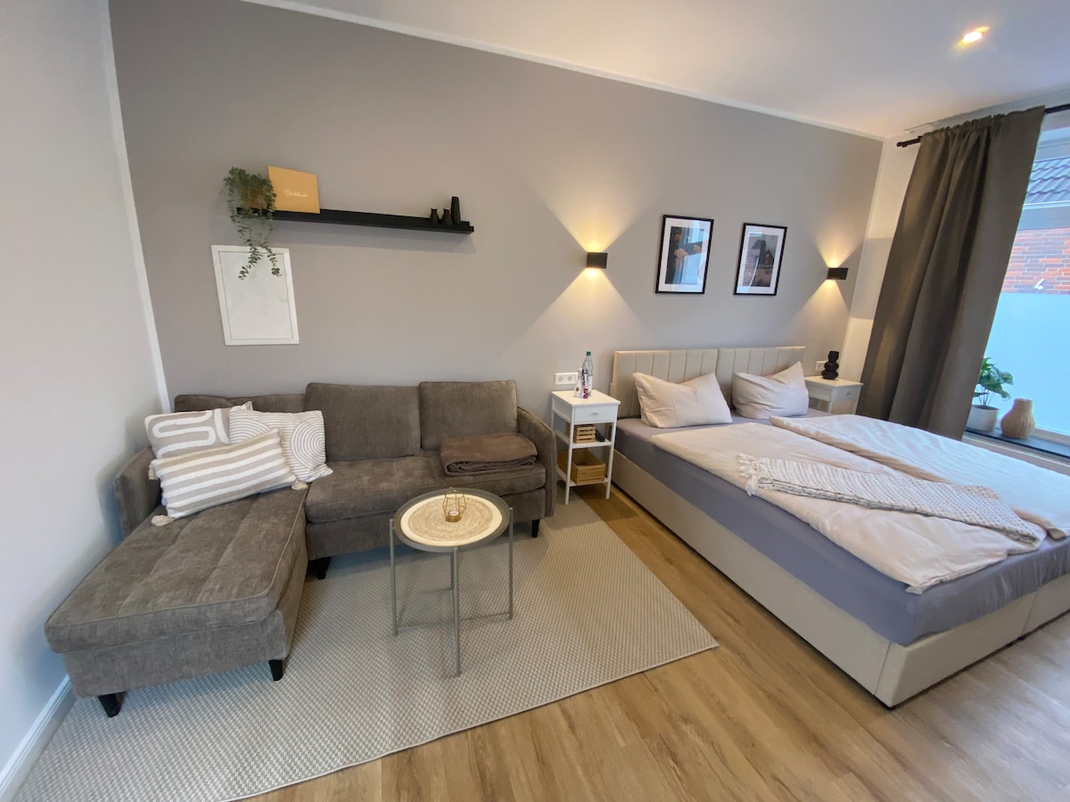 Neu renovierte & modern eingerichtete FeWo in einem denkmalgeschützten Haus am Hafenkopf am historischen Alten Hafen in Weener. Die ca. 50 qm gemütliche Wohnung befindet sich im ersten OG. Sie haben dort einen herrlichen Blick über den Hafen.Im SZ steht eine Doppelbett zur Verfügung (180x200).Im Wohn- & Essbereich kann das Sofa als Schlafsofa umfunktioniert werden. Stellplätze gibt es kostenlos am Hafenplatz.Fahrräder können Sie im Hausflur unterstellen.Renovierung der Außenfassade ab 17.8.22.