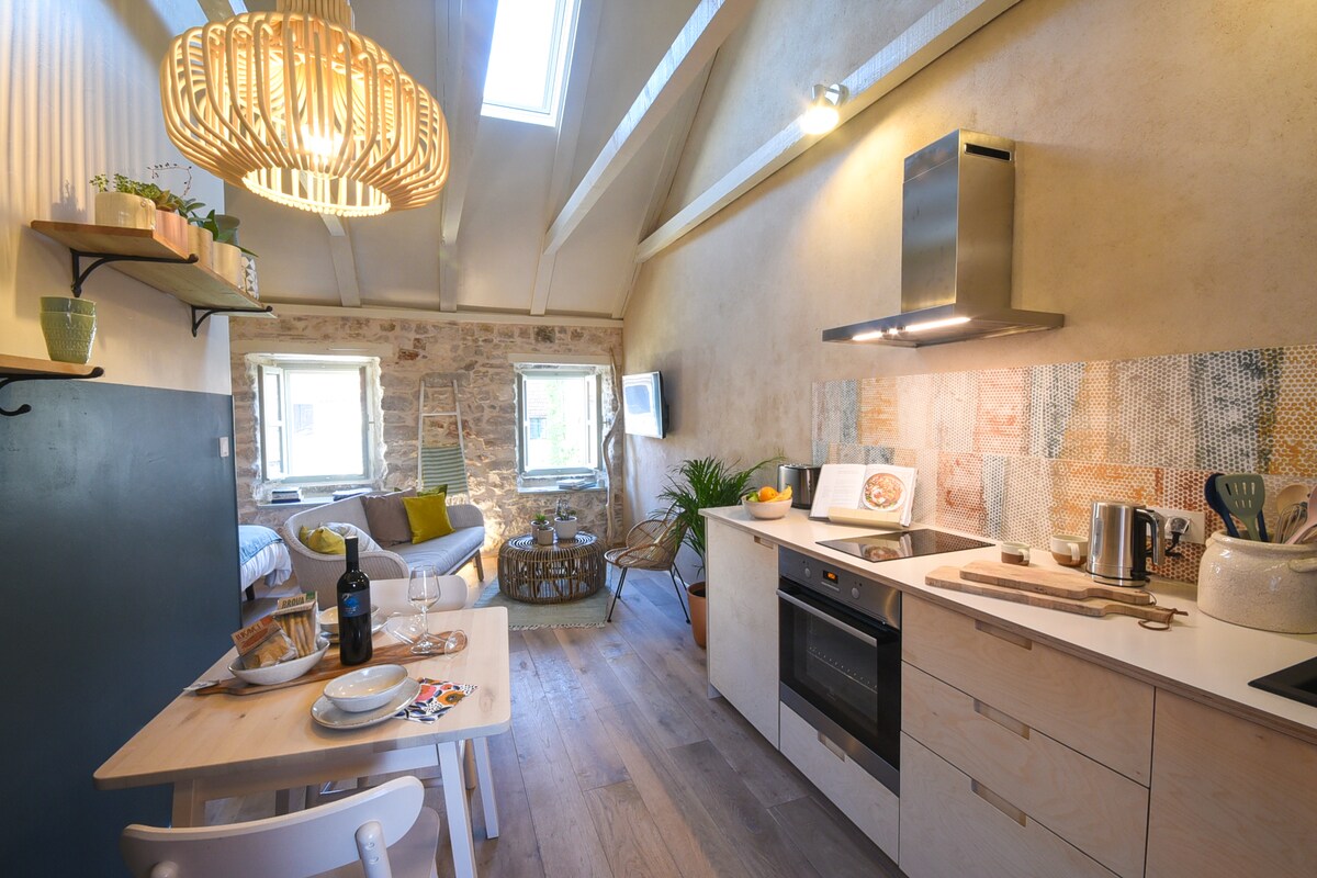 Nou-nouț! Penthouse-ul este un apartament cu servicii incluse, cu design profesional, situat la 100 m de mare, într-o piață liniștită, în inima centrului istoric plin de viață din Stari Grad. Acest apartament ecologic include aer condiționat, bucătărie complet utilată, zonă de luat masa, living, Netflix, baie de lux, Wi-Fi, pat matrimonial. Drumeție/ciclism de la ușa ta, plimbă-te până la plajă și plonjează în Marea Adriatică și descoperă restaurante/baruri uimitoare după colț.