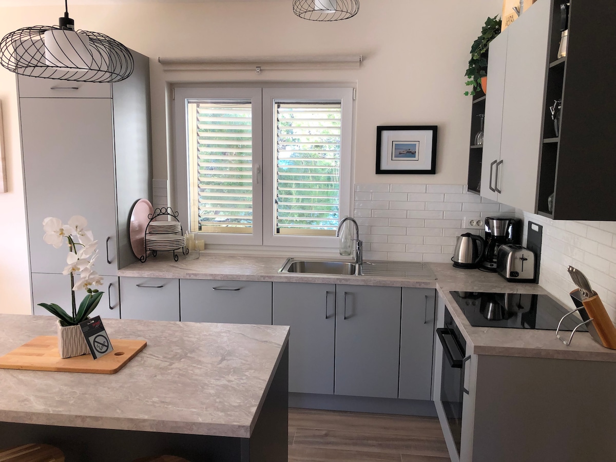 Apartament nou, confortabil și modern. Recunoscut pentru vederea la mare. Are două camere, o bucătărie complet utilată și un living cu două canapele extensibile. Acceptăm animale de companie cu o taxă suplimentară de 15 € pe zi. În curte există un duș și un grătar. În curte există parcare gratuită. Nu există alți oaspeți, sunteți singuri. Vacanță cu mult soare și aer curat. Dezinfectarea și curățenia sunt garantate.