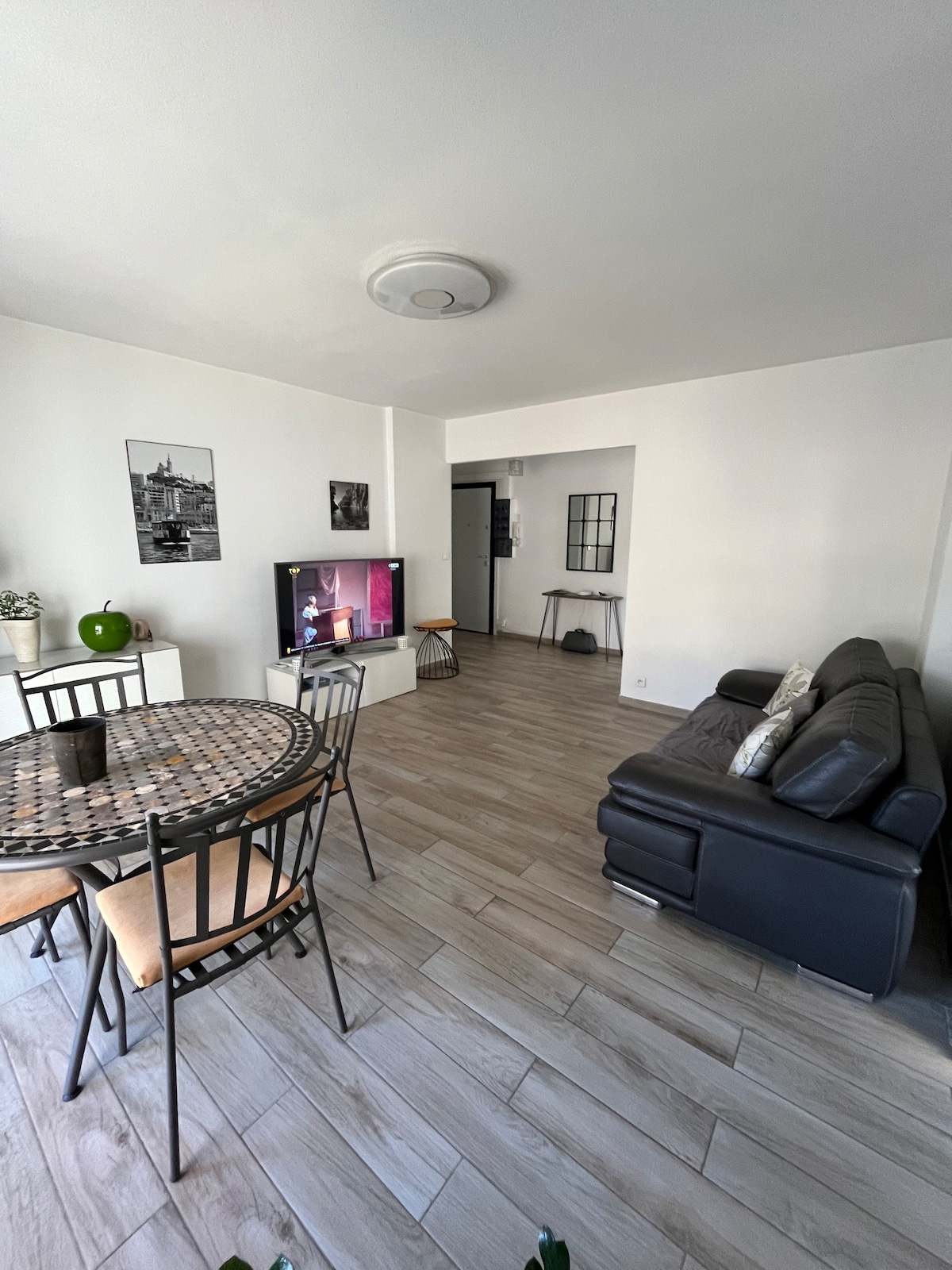 🏠 Cazare pentru 1 până la 4 persoane, cu terasa sa orientată spre sud, renovată de un designer de interior situat în inima Marsiliei 🍽️ Set de bucătărie și lenjerie de pat/baie furnizate 🧺 🛎️ Birou, mașină de spălat rufe, masă de călcat cu fier de călcat, raft suspendat, cuptor cu microunde și scaun pentru copii ☢️ 2 ventilatoare portabile 🚃 3 minute de mers pe jos de metroul Perrier ⚽️ 10 minute de mers pe jos până la Stade Vélodrome și Parc Chanot. 🏄♀️ Plaje în apropiere (15 minute cu autobuzul) 🥡 Magazine la parter de clădire 💻 Wi-Fi 📺 TV