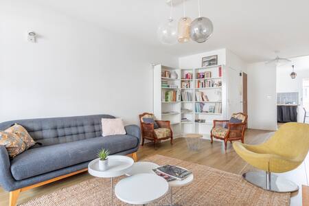 Profitez d'un logement élégant et central avec jardin. Dans le quartier du 6e arrondissement de Marseille, commerces, restaurants, bars, métro et tram. Le vieux port a 10mn à pied, les plages à 20mn. Appartement chaleureux avec deux chambres doubles et deux salles de bain. Un séjour avec télé, une grande cuisine toute équipée avec îlot central et autres tabourets pour prendre les repas, mais également une table de salle à manger dans le hall d’entrée. Un jardin avec salon, table et plancha.