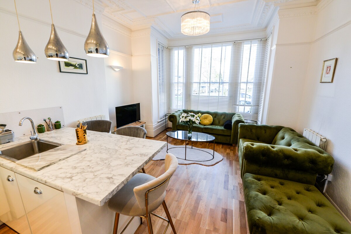 Vino să stai în St Leonards on Sea în acest apartament spațios la subsol, cu 1 dormitor, care face parte dintr-o frumoasă terasă georgiană. Decorat elegant, apartamentul are un dormitor dublu, o baie modernă, un living, cu o masă și scaune, o bucătărie complet echipată și uși franceze care duc la o curte pavată privată. Situat la doar 5 minute de mers pe jos de plajă, de gara Warrior Square și de restaurantele, cafenelele și magazinele vibrante din St. Leonard's, acest apartament este perfect pentru o escapadă relaxantă pe coastă.