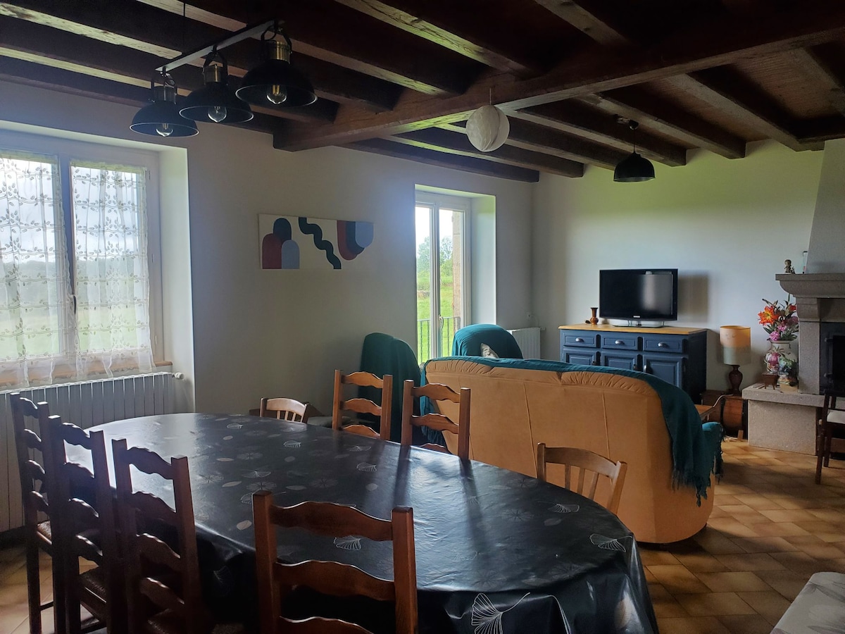 Bine ați venit la casa noastră de la țară, situată chiar în fața fermei noastre, unde puteți descoperi animalele. Casă familială de mai multe generații, am decis să o renovăm pentru a deschide o cabană. În împrejurimi se vor desfășura numeroase activități: plimbări, sporturi în aer liber, vizitarea micilor sate tipice Corrèze... Cadrul ideal pentru vacanțe cu familia sau prietenii ! Acces la autostrada A89 în 10 minute. ÎN JUILLET-AOUT: 5 NOPȚI MIN