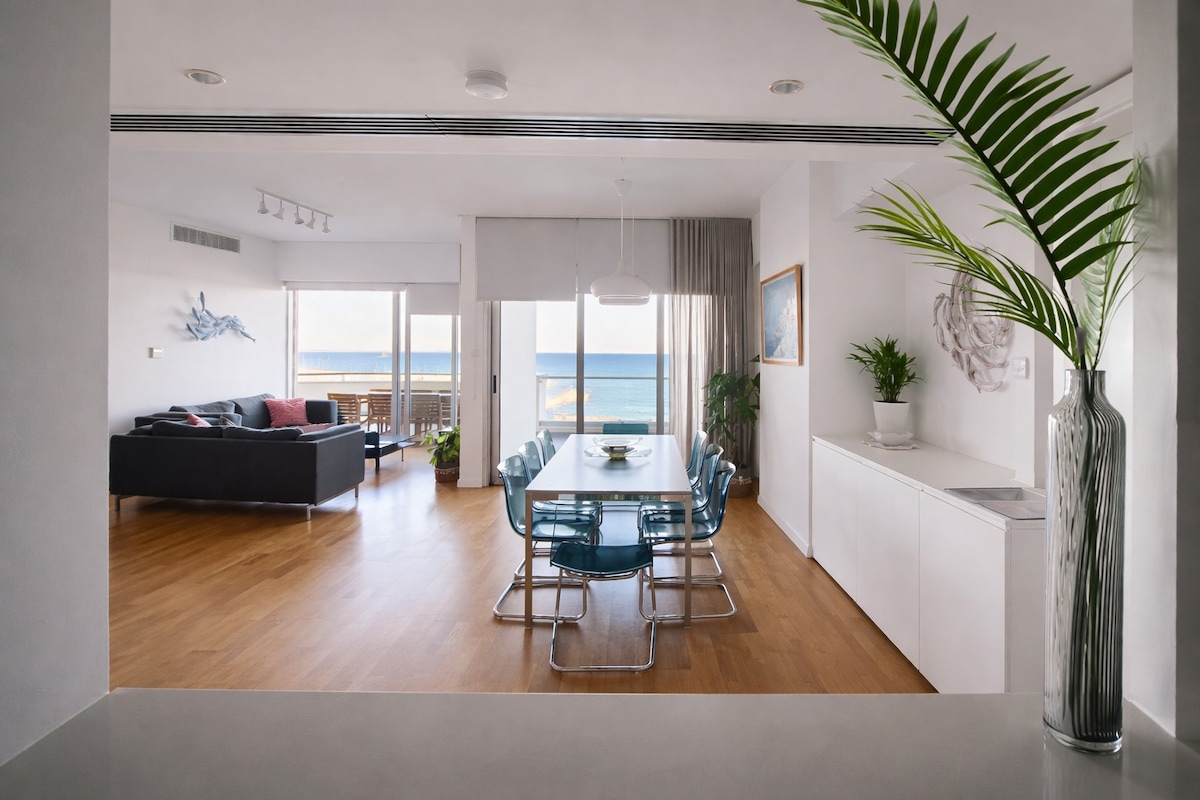 Hard to beat this stunning 3-bedroom loft apartment strategically located just 7 minutes walk from the sea, really close to the beach and promenade but away from the noise and the traffic. Wow factors one after another: the loft is huge with striking high ceilings, design kitchen, three big comfortable bedrooms, two full bathrooms, sunny terraces with sea and palm trees view, an Amazing rooftop communal pool, fast wifi. Ideal place for the perfect holiday and fully equipped for longer stays too
