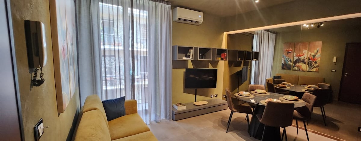 Apartament luminos situat în centrul Cataniei, complet renovat și situat într-o clădire impunătoare. Apartamentul are două dormitoare foarte mari, o bucătărie foarte mare cu o canapea extensibilă și un televizor inteligent de 50", o baie cu duș și o terasă de unde să observi orașul. Casă caldă și confortabilă, are tot confortul posibil. Deplasarea este foarte simplă, atât pe jos, având în vedere că ne aflăm în inima centrului orașului, cât și cu metroul și autobuzul.