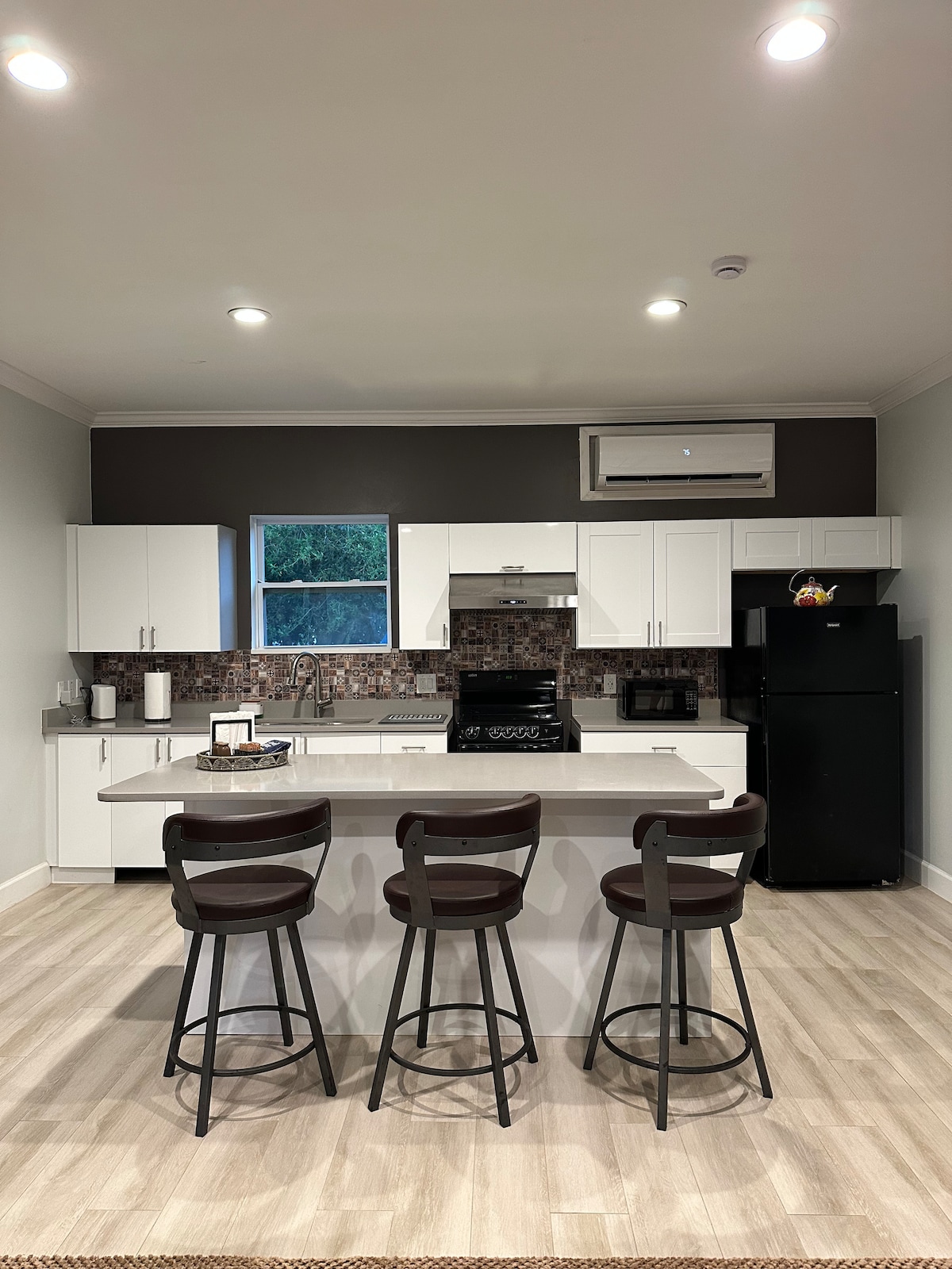 Casă de oaspeți nouă, modernă, bine situată, cu intrare privată pentru intimitate completă; suntem la 3 minute de Port 27, la 10 minute de Legoland, la 40 de minute de parcurile majore și la o oră de Bush Garden Tampa. Un dormitor, o baie, living cu chicinetă (fără aragaz), apartament în stil hotelier. Până la 4 oaspeți, cameră cu pat matrimonial și o canapea extensibilă în zona de living. Wi-Fi inclus. Parcare pentru o mașină. Este o casă de oaspeți liniștită și confortabilă, separată de o ușă de restul casei