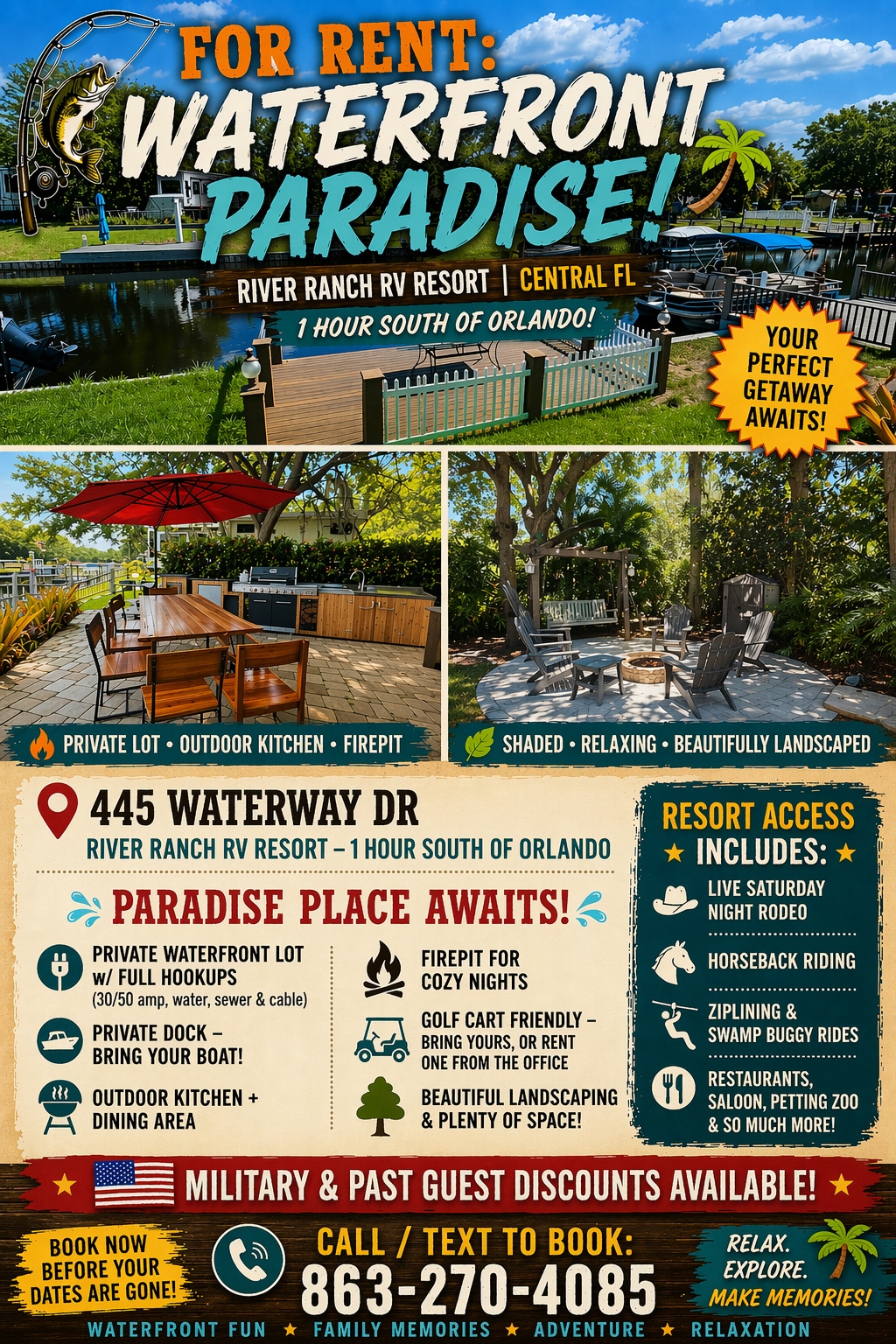 Paradise Place Waterfront RV Lot! River Ranch 445