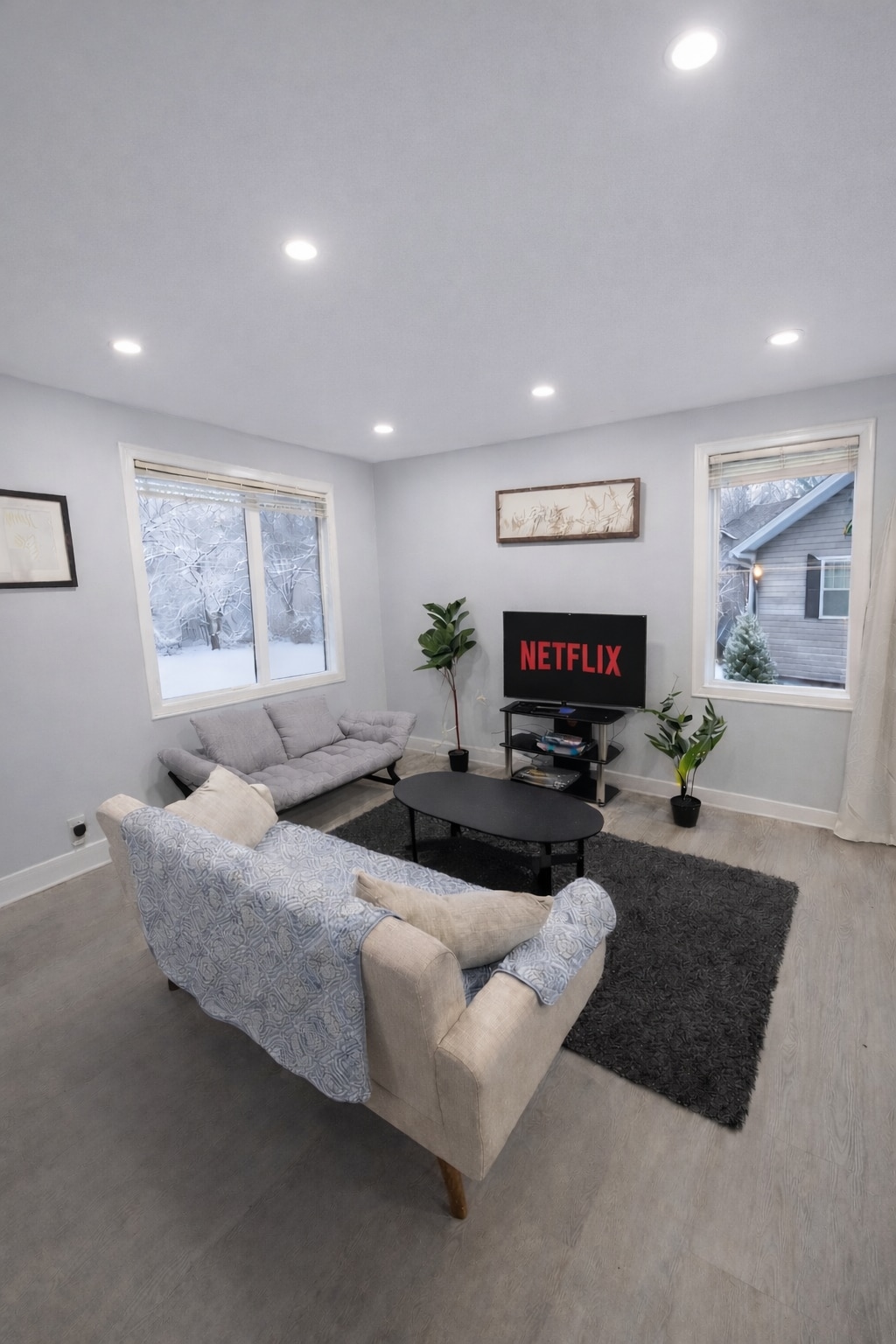 Bine ai venit în casa ta departe de casă! Acest subsol are o intrare privată și este nou construit, cu o baie completă și facilități de bucătărie, un living spațios, zone de luat masa interioare și exterioare și un dormitor confortabil. Bucură-te de facilități moderne, cum ar fi Wi-Fi și un televizor de 50"cu un abonament Netflix plătit integral. Confortul tău este prioritatea noastră, cu un loc de parcare desemnat pe alee pentru oaspeți. În apropiere se află opțiuni populare de luat masa, cum ar fi Swiss Chalet, DQ etc.