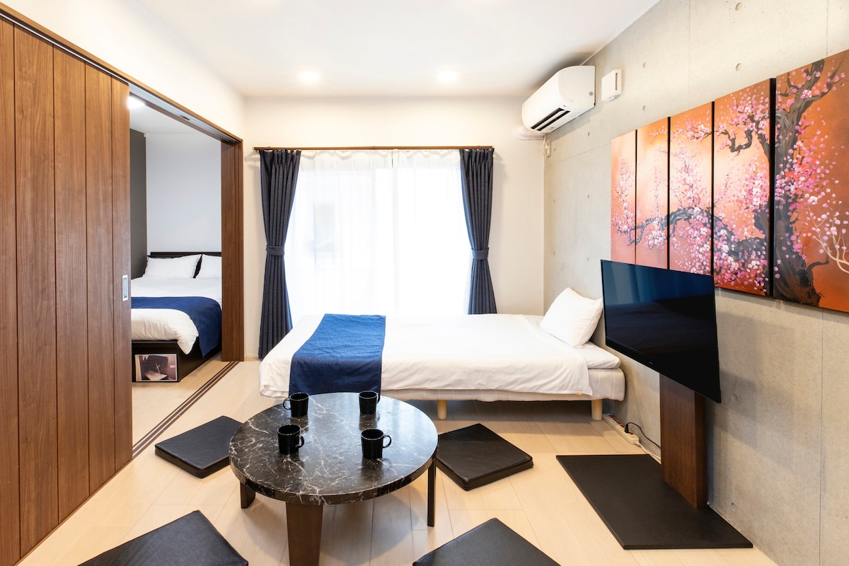 スカイツリー/東京観光/押上駅12分/ゆったり2寝室/Wベッド1台、セミダブル2台