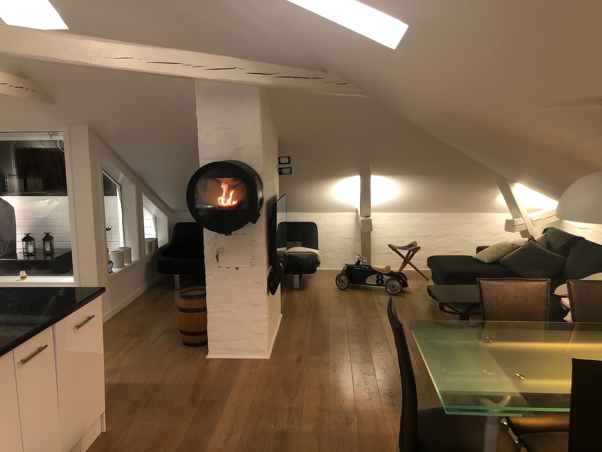Leiligheten er et romslig loft. Her er detaljene designet av nordiske arkitekter, i en skandinavisk stil for koselige kvelder og arbeid. Stuen er stor og luftig med sofa og spiseplass. Her er det loftsvinduer og autentisk treverk i taket og heltre gulv. Soverommet er romslig med en stor komfortabel seng og en praktisk kjøkkenkrok. Alt du trenger skal være tilgjengelig :) Arbeidsrommet er godt designet for fokusert arbeid med bærbar pc eller lesing. Bøker tilgjengelig for å lese. Velkommen!