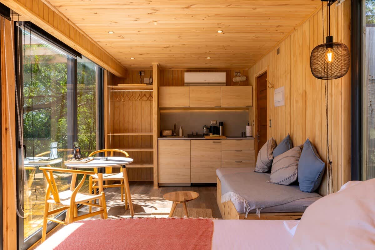 Canelo Loft es una acogedora cabaña para dos personas, con linda vista a los volcanes y un hermoso bosque nativo. Condominio tranquilo y seguro ideal para descansar. Olvídate de las sábanas y toallas. Wifi, Smart TV, A/C, cama tamaño king, hot tub (incluido en el precio!🤩), cocina completamente equipada y estacionamiento. Cercano al comercio local. NOTA: para poder esperarte con el hot tub calientito, necesitamos que nos reserves con 3 días de anticipación.