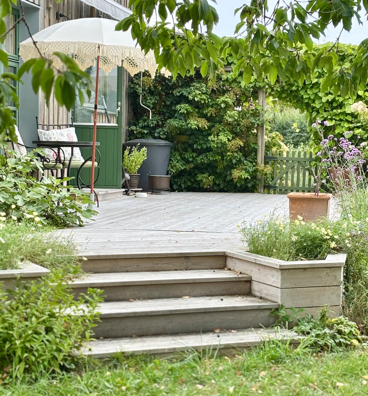 Bine ai venit la o ședere liniștită în secunda mea confortabilă! Locuiești în propria ta casă, anexa mea, cu acces la propria ta curte interioară. În fața casei există o zonă verde, te trezești cu păsări ciripind în fiecare dimineață. Liniștit și confortabil într-un fundătură. Apartamentul constă din living, chicinetă, hol mobilat, dormitor cu câteva paturi (pot fi atașate împreună) la etaj. WC, sală de duș, saună, hol și spălătorie la etajul inferior. Există un mic frigider, câteva farfurii de gătit, un cuptor cu microunde și un filtru de cafea.