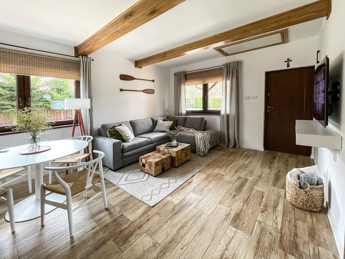 Nasz domek wykonany jest z drewna, a urządzając go skupiliśmy się na każdym najdrobniejszym szczególe. Dbałość o detale, drewno, naturalna kolorystyka, – to wszystko sprawia, że wnętrza naszego domu są przytulne, wygodne i funkcjonalne. Dom jako jedyny znajduje się na ponad 1000 m2 ogrodzonej działce, w odległości tylko 250m od ogólnodostępnej, piaszczystej plaży. Inne ważne rzeczy *jacuzzi oraz sauna wliczona w cenę