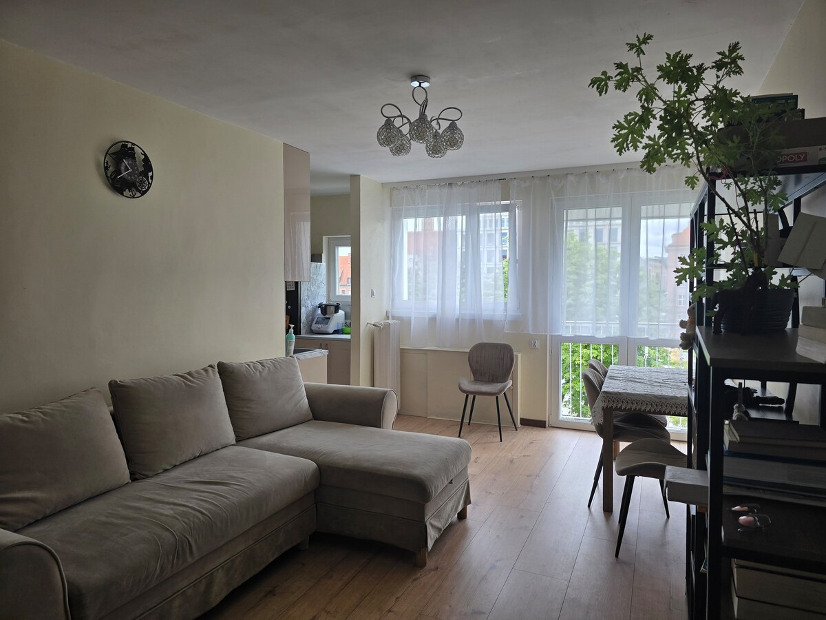 A fresh, luxury apartment in downtown Wroclaw. Located in a new modern apartment building with an elevator. Quiet, secure, and well-situated. Just a few minutes walk to the city center. Spacious balcony with a breathtaking view. 400 meters from the Main Market. Free high-speed fiber optic WiFi, 55" 4K SMART TV, AC. Free underground, secured and monitored parking place !