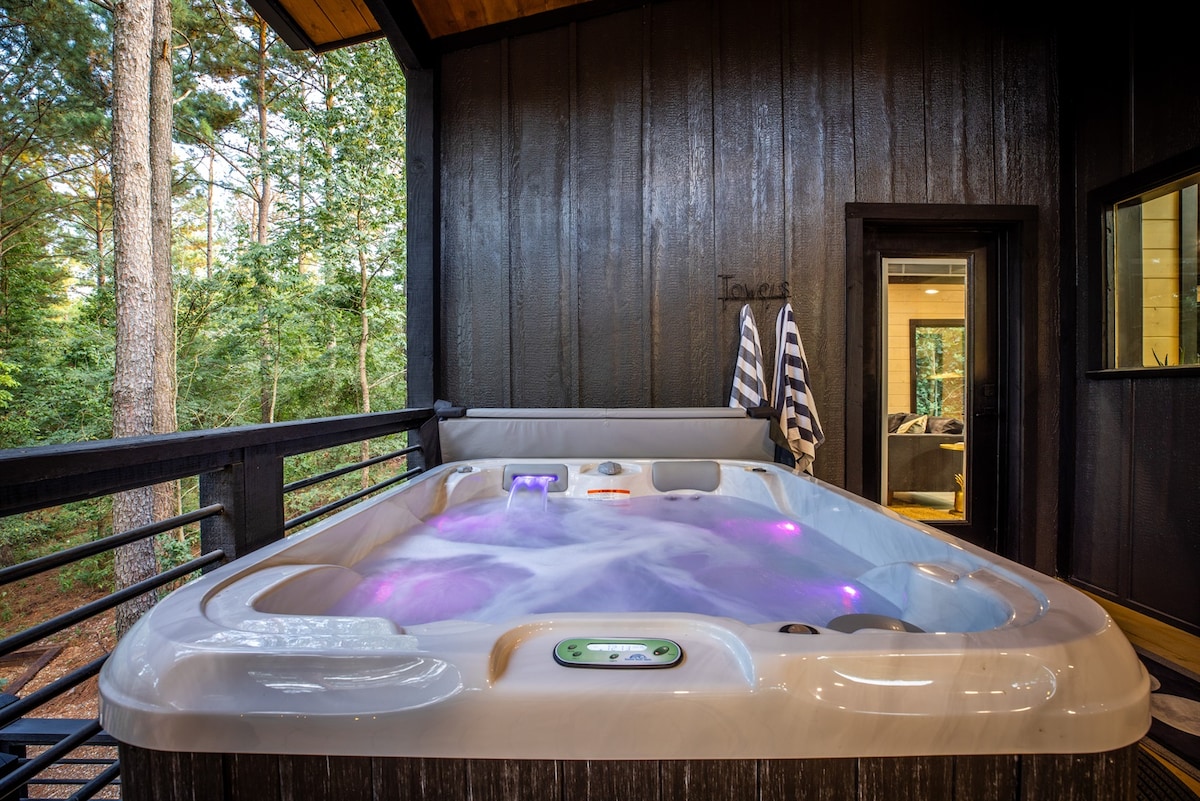 Tuklo Tiak, Choctaw pentru „Two Pines”, este o cabană de lux amplasată printre pini, oferind refugiul perfect pentru cupluri. Cu șeminee interioare/exterioare, cadă cu hidromasaj, saună și vatră, oferă relaxare și conexiune. Situat între Broken Bow și Hochatown, acesta oferă intimitate și liniște, dar se află la câteva minute de mese, cumpărături și atracții. Experimentează o evadare liniștită pe care vei dori să o revezi, cu fiecare detaliu conceput pentru confort și liniște - perfect pentru a crea amintiri de durată.