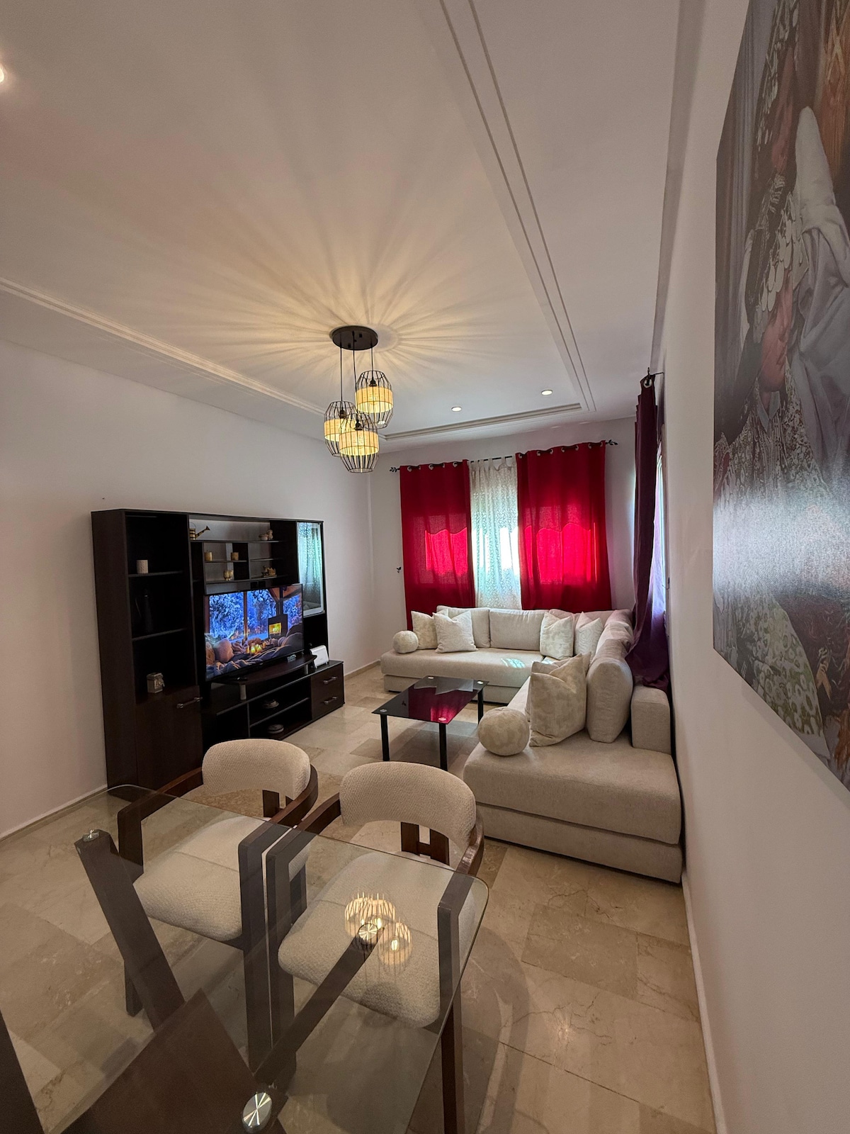Apartament modern și confortabil în Fez Situat ideal: la 5 minute de mers pe jos de gară, acest apartament combină eleganța și confortul. 🏡 Spațiul Living ✔️ spațios cu TV și aer condiționat Bucătărie ✔️ utilată: cuptor, frigider, cuptor cu microunde, aparat de cafea ✔️ 2 dormitoare moderne (1 pat dublu + 2 paturi de o persoană) Baie ✔️ modernă 📍 Locație ✔️ centru, magazine, restaurante ✅ WiFi 🛜 (FIBRĂ OPTICĂ), lenjerie de pat, prosoape Rezervă acum!