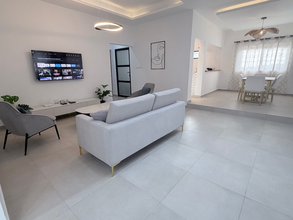 Bine ai venit în coconul tău de seninătate din Fidjrossè, într-un apartament modern, la 5 minute de plajă și la 15 minute de aeroport. Bucură-te de un cadru liniștit și luminos, aproape de restaurantele de pe drumul pescăresc. Cu două dormitoare matrimoniale, bucătărie utilată, terasă privată, Wi-Fi rapid și aer condiționat, acesta este locul perfect pentru o ședere pentru 4 persoane, în vacanță sau în deplasare pentru muncă. Magazine, cafenele și supermarketuri se află la câțiva pași.