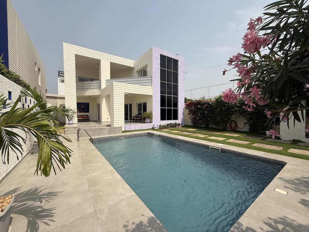 Ce logement affiche un style résolument unique. Situé à 300m de la mer dans un quartier résidentiel sécurisé, il est proche du plus grand centre commercial, de l’aéroport, de l’ambassade des USA et de celui de la France. Il affiche un style Soft, Frais et Unique. C’est l’endroit idéal pour passer ses vacances.