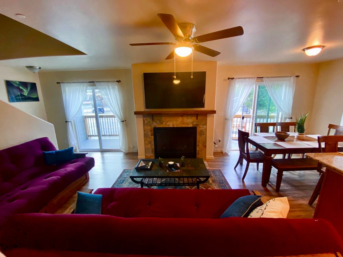 Acest frumos apartament Ouray este situat convenabil la o stradă de strada principală, dar foarte liniștit! La câțiva pași de cumpărături, restaurante, traseu perimetral și parc de gheață de renume mondial! Cam la o oră de mers cu mașina de Telluride. Actualizat și elegant cu pat matrimonial modernizat, canapea extensibilă cu spumă de memorie, aparate de bucătărie complet echipate cu friteuză cu aer! Apartamentul este ideal pentru cupluri, aventurieri solo și familii/grupuri de 4 persoane care caută un loc de relaxare. Bucură-te de scaunele hamac sau stai lângă șemineu după aventuri minunate.