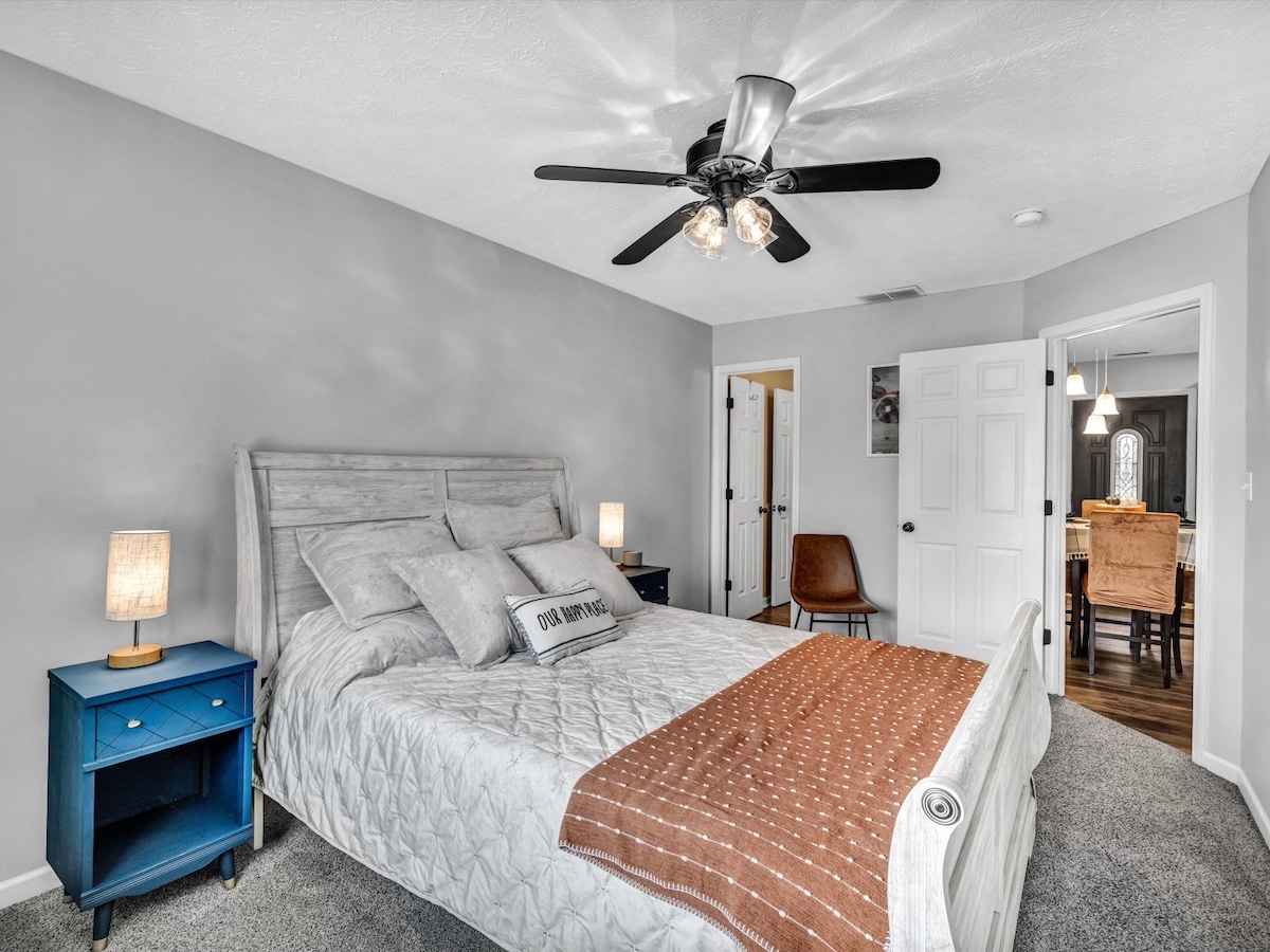 Welcome y'all! Serene hot tub, fenced-in back yard (2-dog limit, extra charge). Airport shuttle (separate fee). Nestled near parks, 3 miles from Edge Ice/Sports Arena. Immerse yourself in cultural richness at Bluegrass Music Hall of Fame and Owensboro Symphony Orchestra. Enjoy free summer outdoor entertainment on the Riverfront. Holiday World (30+min). Experience southern style with breakfast at Windy Hollow Biscuit House, & ribs, mutton or burgoo at Moonlight BBQ (visited by celebrities).