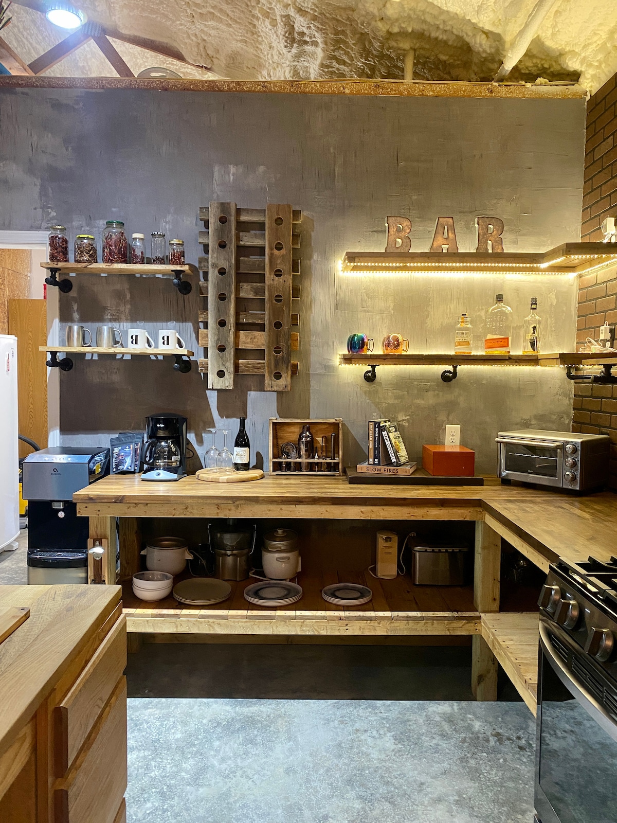 This classy and cozy space will set your imagination free. The unique mix of modern and rustic blend beautifully in this fully equipped Barndominium. The private backyard offers incredible views and the sunsets are not to be missed. Cook in the well stocked kitchen. Get cozy to watch a movie on the smart TV. The King bedroom is spacious and provides an amazing nights sleep with a guest favorite mattress! There is a twin bed in the main living room for more than 2 guests.