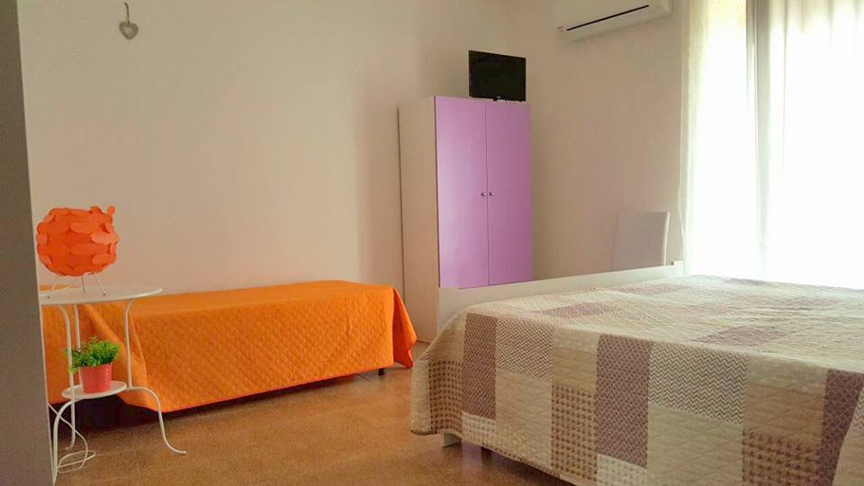 CIN: IT089013C2RTE4YN43 Apartament luminos la primul etaj, cu terasă cu flori și mobilier de grădină. Intrarea în bucătărie este dotată cu aer condiționat. Bucătăria duce la cele două dormitoare, atât duble, cât și cu alte două aparate de aer condiționat, unul pe cameră. Poți solicita un pătuț sau te poți alătura gratuit paturilor de o persoană din a doua cameră. Bucătăria duce la living cu o canapea confortabilă și televizor, cu spălătorie. Baie cu cabină de duș. WI-FI gratuit.