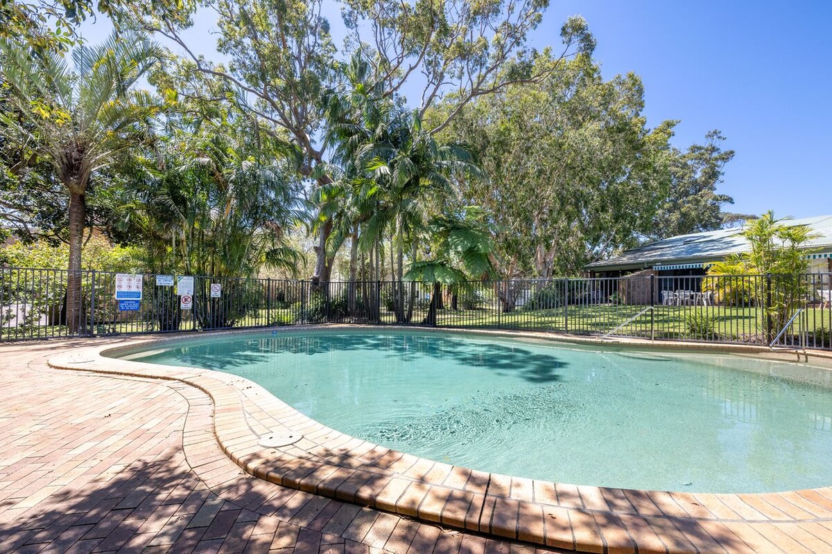 Bine ai venit în minunata noastră casă de oraș cu două etaje, la 200 m de plaja Boomerang. Caracteristicile includ: - parcare sigură - Acces la piscină - Acces la terenul de tenis de jumătate de teren (bile și rachete furnizate) - WiFi - Ventilatoare de tavan în toate camerele - Curte privată complet echipată cu setarea grătarului - Două minute de mers pe jos de plajă - Șapte minute de mers pe jos de magazine și cafenele - 20 min cu mașina până la Forster - Au fost furnizate perne Doona și Perne. Dacă este necesară lenjeria de pat, pot oferi un contact local