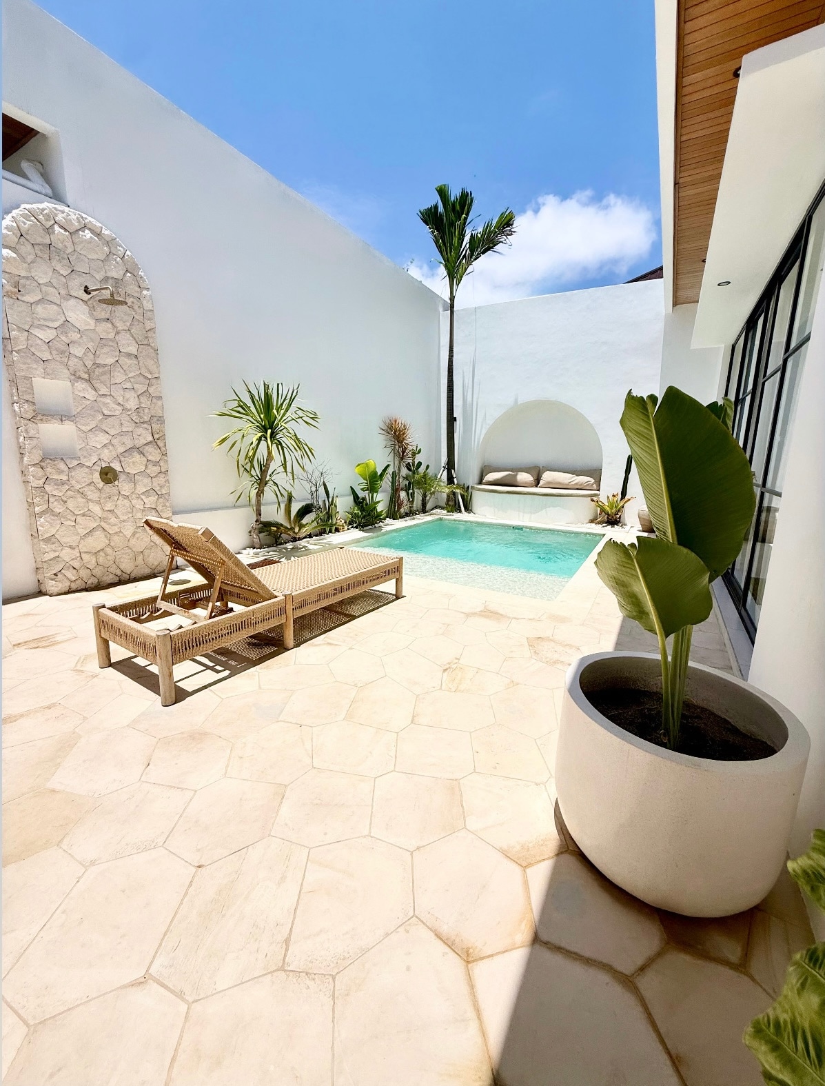 🌴 Welcome to UMA AMI 🌸 A brand new designer 3BR villa in central Uluwatu, in between Bingin and Padang Padang, where tropical charm meets modern elegance. Swim in the iconic private pool, lounge on sun-drenched daybeds, or gather under soaring wooden ceilings beside an indoor palm. Each room is uniquely styled with natural textures and luxe touches. Just minutes from Bali’s best beaches, cafés, and sunset spots — UMA AMI is peaceful, walkable, and effortlessly beautiful.