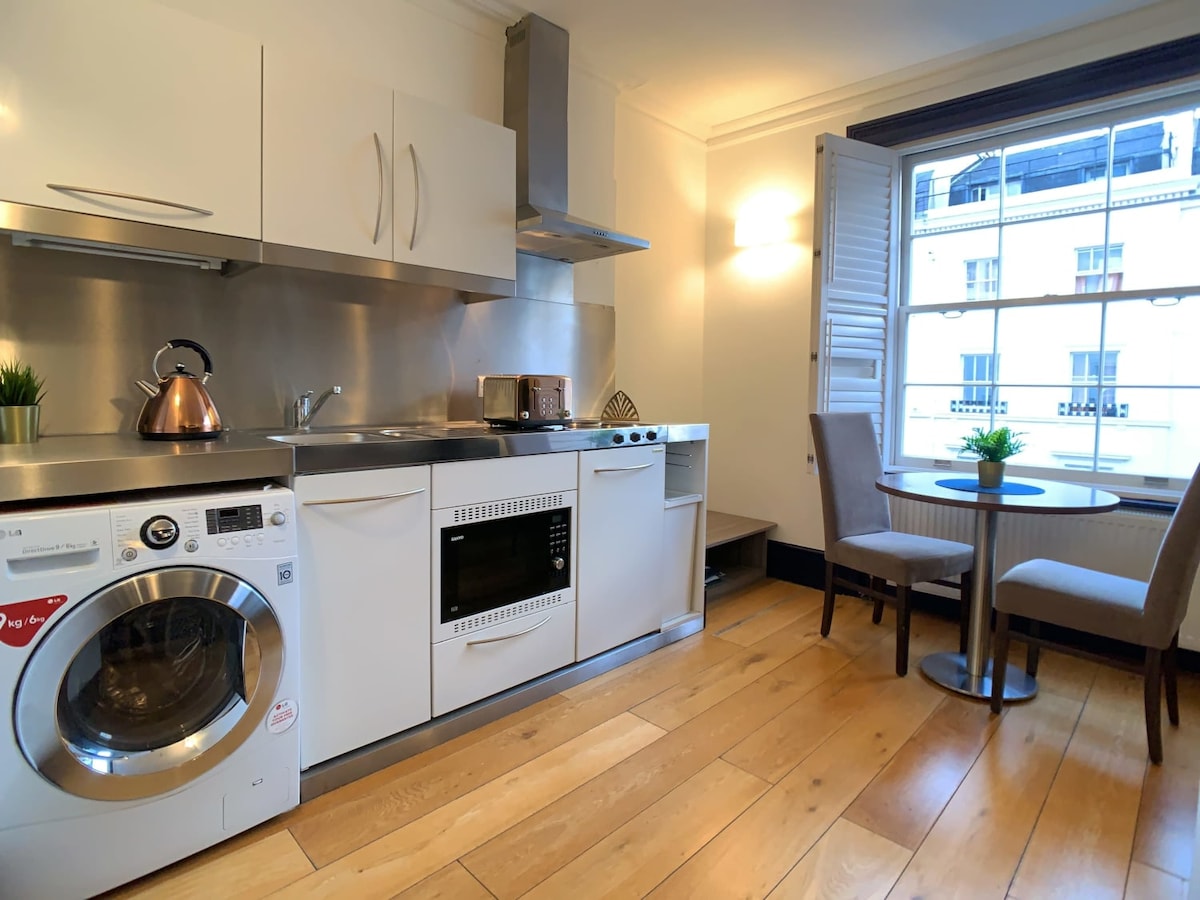 ★ Apartament cu un dormitor într-o zonă centrală liniștită. ★ 5 minute de mers pe jos până la gara Paddington și stația de metrou Lancaster Gate ★ Are un pat dublu standard în Regatul Unit, o canapea extensibilă dublă și un singur pat pliant. ★ Depozitarea bagajelor este disponibilă între orele 10:30 și 14:30. ★ Sunt puse la dispoziție lenjerie de pat și prosoape curate, de asemenea, articole de toaletă. Potrivită ★ pentru laptop, cu Wi-Fi de mare viteză (complementar Încălzire ★ centrală cu termostat inteligent ★ Situat la etajul 2 - fără lift. ★ Check-in independent ușor, cu o încuietoare electronică, fără cheie.
