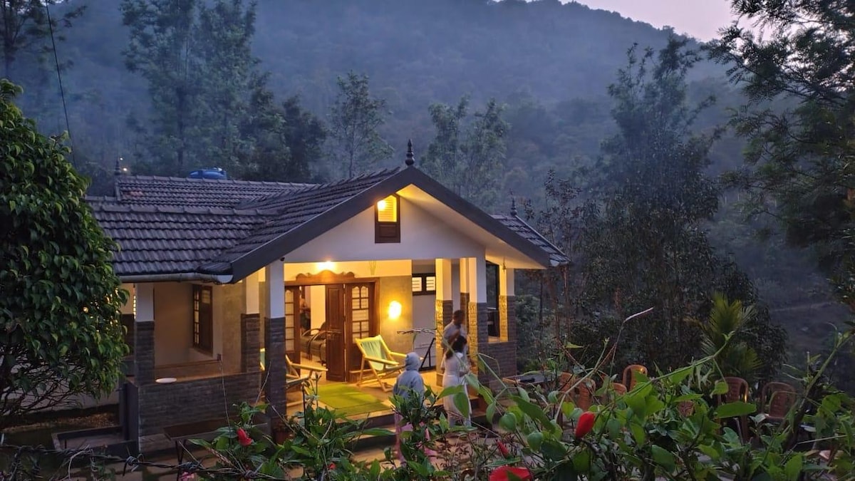 Reconectează-te cu natura și cu tine la această evadare de neuitat. Vila noastră este o casă privată exclusivistă, cu 3 dormitoare, bucătărie și balcoane și terase spațioase cu priveliști uimitoare. Activități: poți face drumeții până la vârful și punctul de vedere „Muneeswaran kunnu”. Fă o baie într-un flux din apropiere (ambele accesibile pe jos sau poți alege o plimbare cu Jeep) Ne aflăm în partea de nord a Wayanad, care se învecinează cu Coorg (~60 km de zona cu alunecări de teren din 2024).