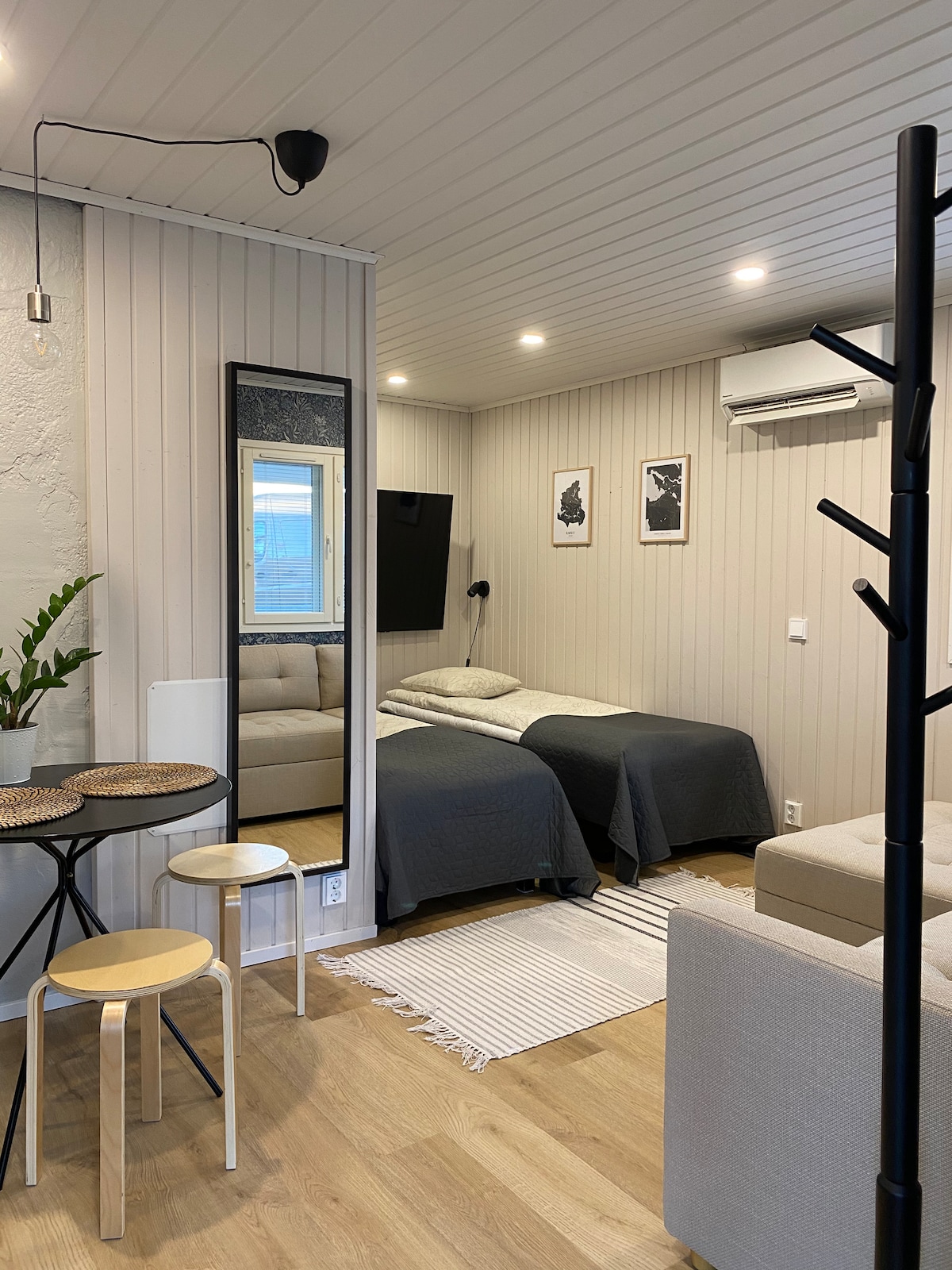Viihtyisä, juuri remontoitu minitalo neljälle yöpyjälle Nastolan Kouluharjulla. Minitalo sijaitsee samassa pihapiirissä toisen talon kanssa. Huoneistossa on pieni keittiö, ruokailutila, kaksi sänkyä, 140 cm leveä vuodesohva sekä kylpyhuone-wc. Huoneistossa on ilmalämpöpumppu. Vuodevaatteet sisältyvät hintaan. Pihassa ilmainen pysäköinti ja mahdollisuus sähköauton lataamiselle 10€ lisämaksusta. Tervetuloa majoittumaan rauhallisessa ympäristössä työmatkalla tai lomareissulla!