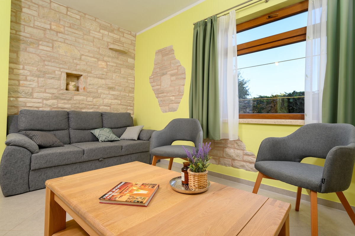Casa de piatră este situată la doar 3 kilometri de Svetvincenat. Oferă oaspeților 2000m2 de spațiu propriu, bucătărie interioară și de vară, șemineu, cadă de masaj în partea din față a curții cu protecție solară, saună cu infraroșu și șezlonguri și scaune pentru odihnă. De asemenea, sunt disponibile 2 biciclete. Casa este dotată cu aparate de uz casnic moderne (Kitchenaid, aparat de cafea cu capsule De Longhi, frigider american...). Apropierea de piață este de numai 100 de metri.