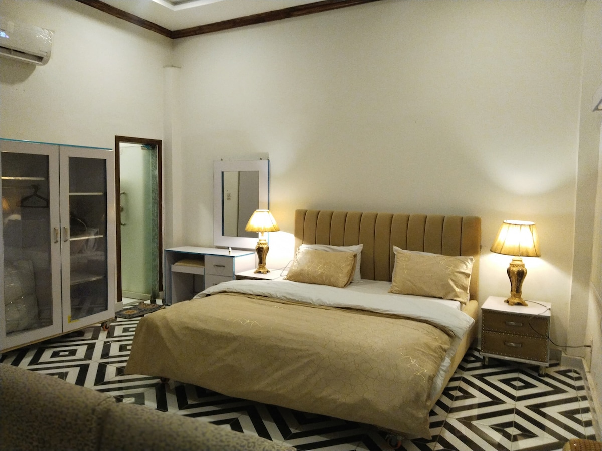 📍 Orașul Model, Lahore ✨ Opulent 3BR – Etajul 1 ✨ Ideal pentru: familii | prieteni | afaceri | călători ⏱️ Check-in: 15:00 | Check-out: 12:00 (Check-in devreme la cerere) * Etajul 1 al unei case private securizate * 3 dormitoare proprii * Lounge și zonă de luat masa de lux * Bucătărie complet utilată + aragaz electric (după întreruperea alimentării cu gaz) * 2 terase și gazon * Zonă de lucru + jucării pentru copii * Articole esențiale pentru micul dejun pentru 1 zi * Alimentare de rezervă și pază non-stop * Parcare gratuită la proprietate * Preluare de la aeroport disponibilă (se aplică taxe)